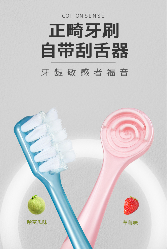 넓은 머리 교정 칫솔 부드러운 머리 어린이 슈퍼 소프트 성인 과일 맛 긁기 혀 코팅 클리너 교정 용 특수