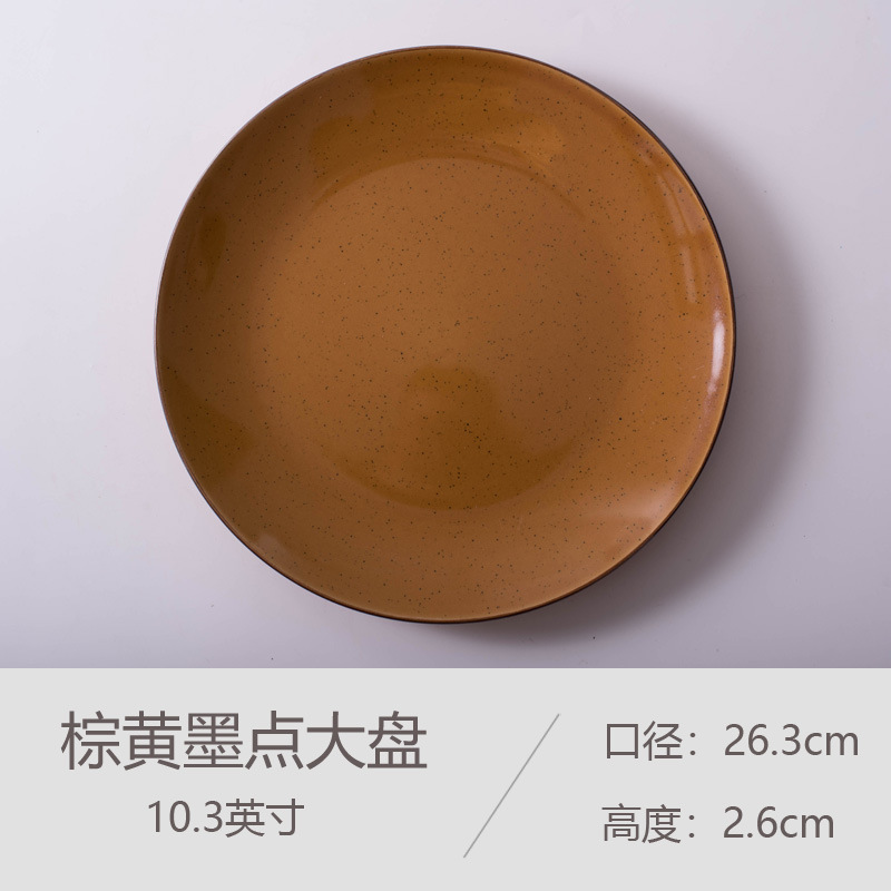 • 다크 브라운 및 노란색 잉크 도트 큰 접시