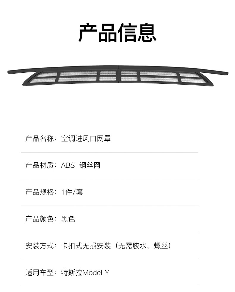 모델/3 테슬라 에어컨 공기 흡입구 보호 커버 테슬라 곤충 그물 개조 중간 그물에 적합한 크로스 보더스토어 가기