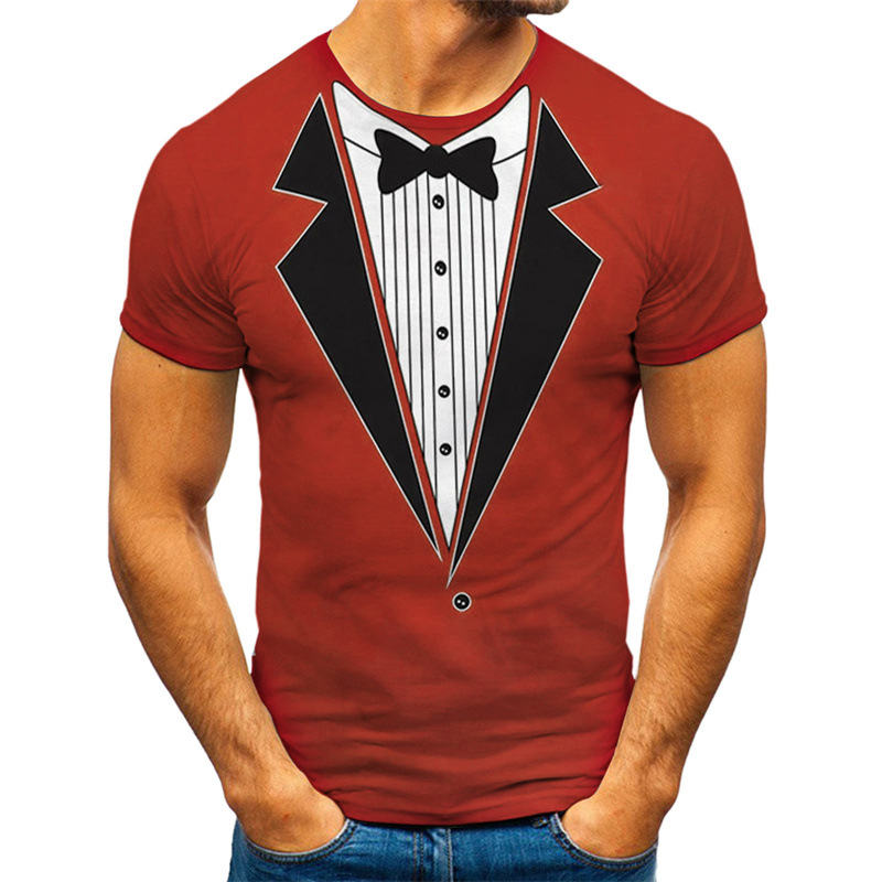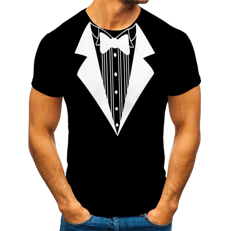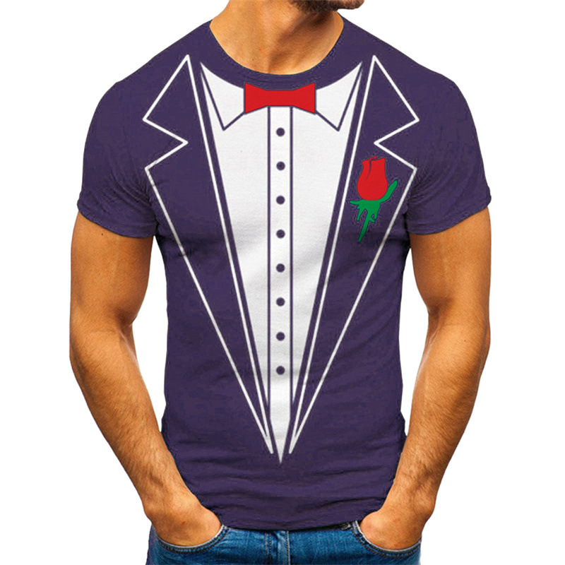 남성 티셔츠 유럽 및 미국 패션 스타일 투피스 디자인 3D 프린팅 슬림핏 상의 공장 직판 도매 반팔