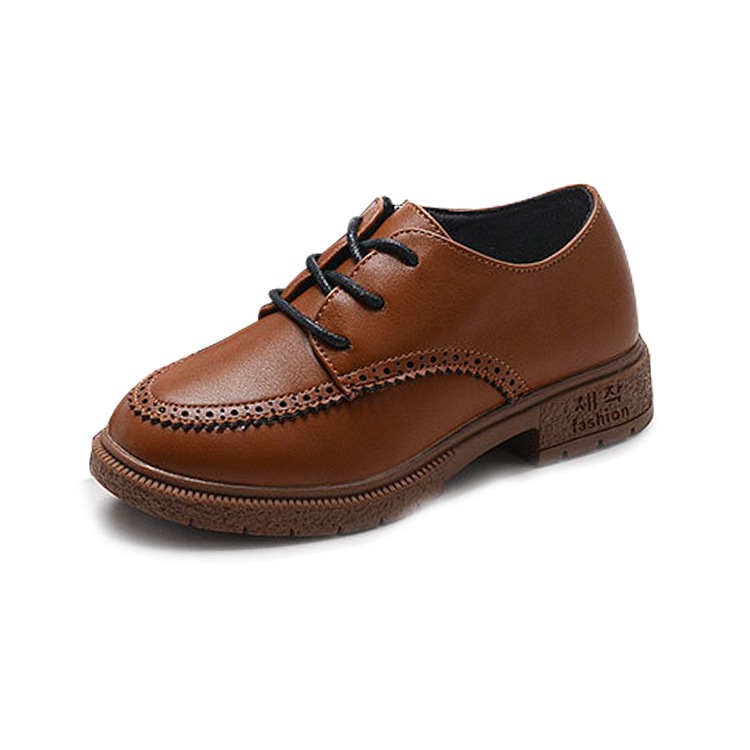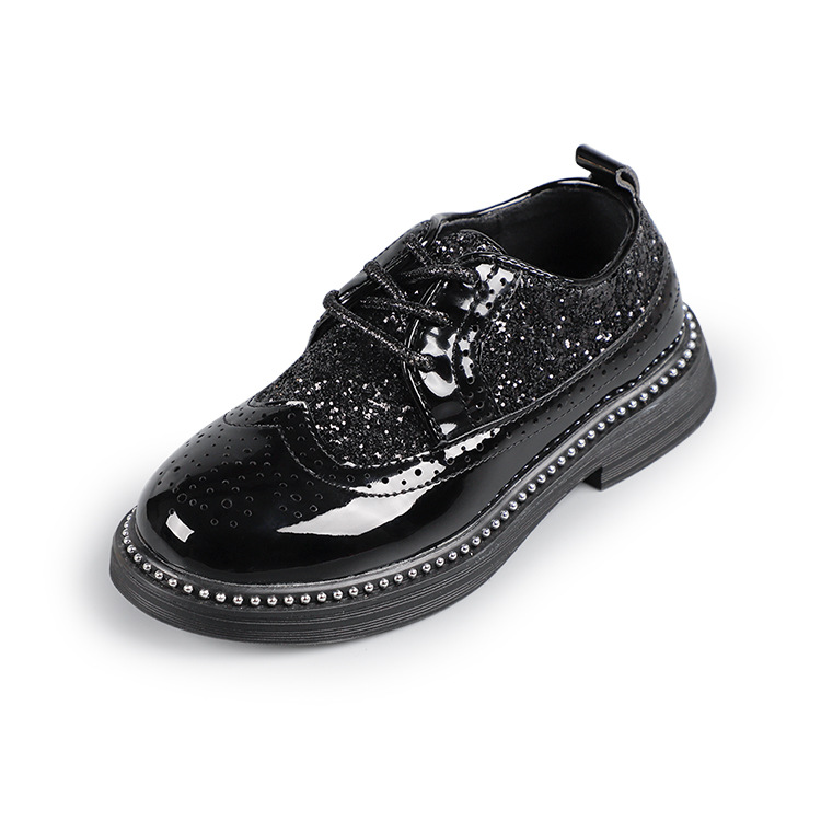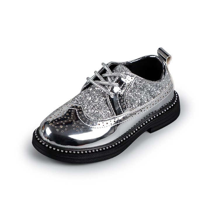 어린이 광택 가죽 신발, 유아 발표회용, 속이 빈 끈 달린 아동화, 남아용 매직 스티커 PU 가죽 신발, 반짝이 장식스토어 가기