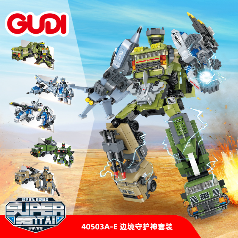 Goody 40503 테두리 가디언 5 대 1 변형 조립 로봇 소년 작은 입자 빌딩 블록 장난감스토어 가기