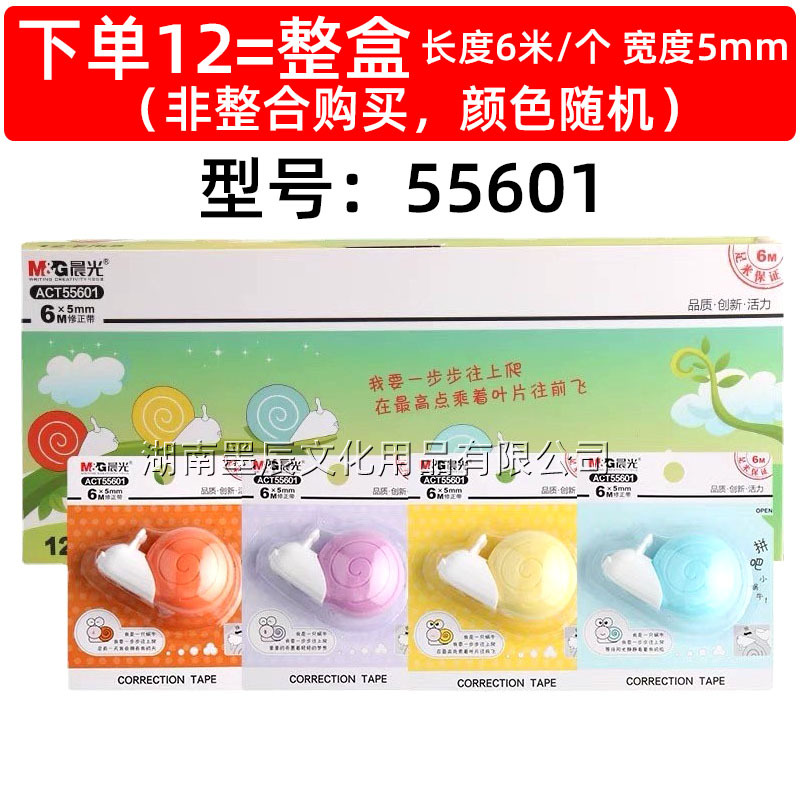 Chenguang 55601 달팽이 교정 테이프 학생용 작은 달팽이 교정 테이프 흰색 6m 귀여운 창의적스토어 가기