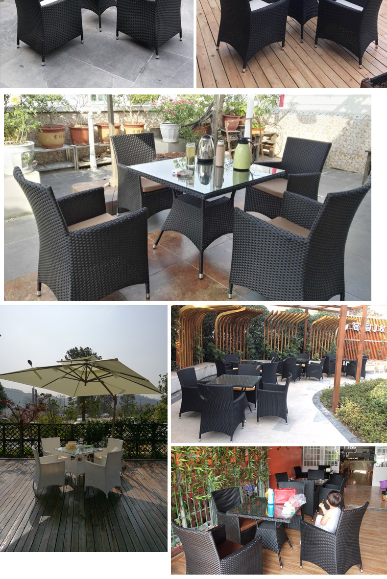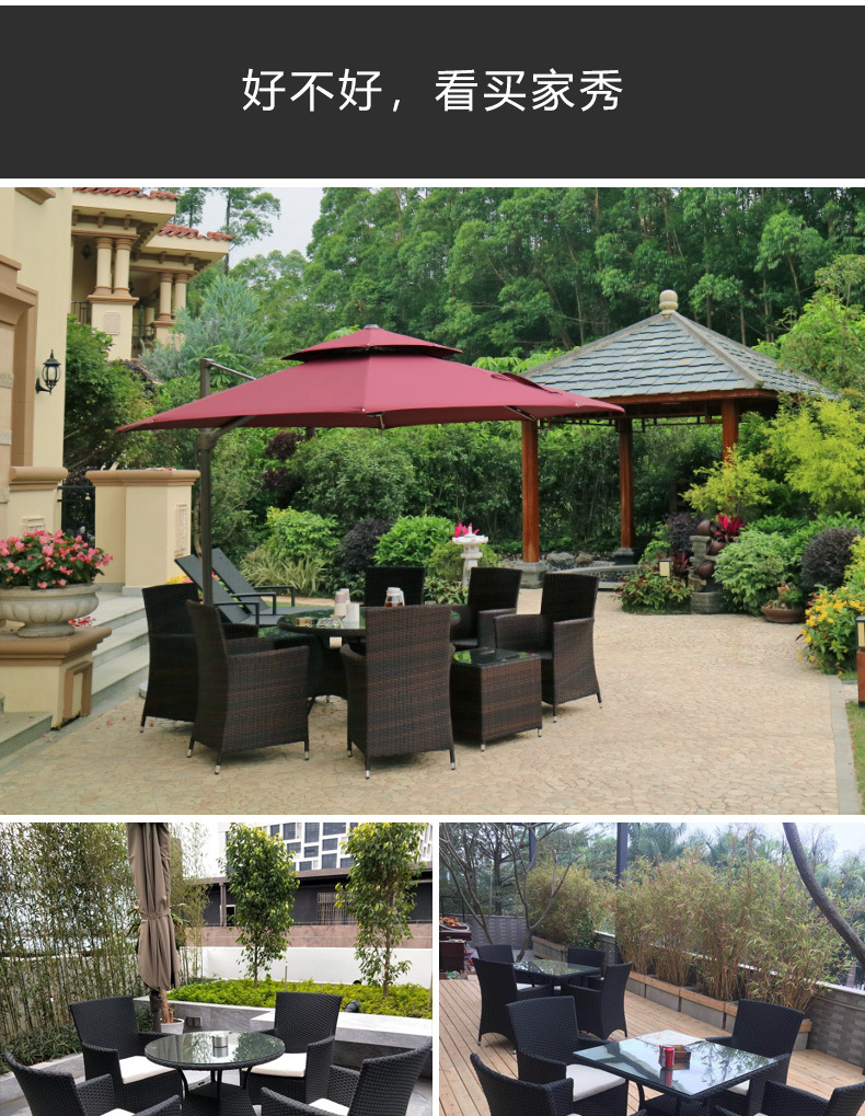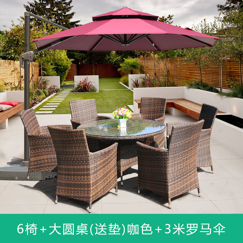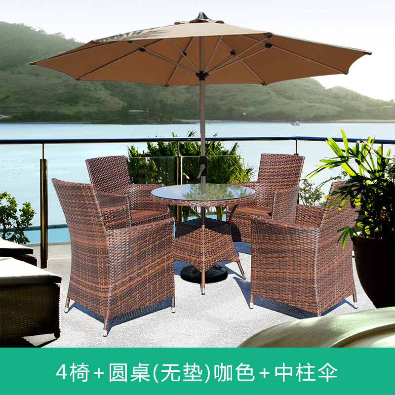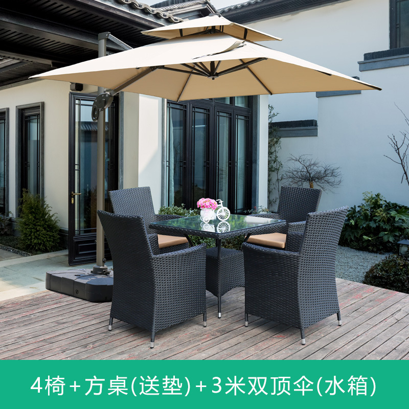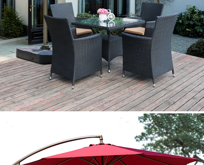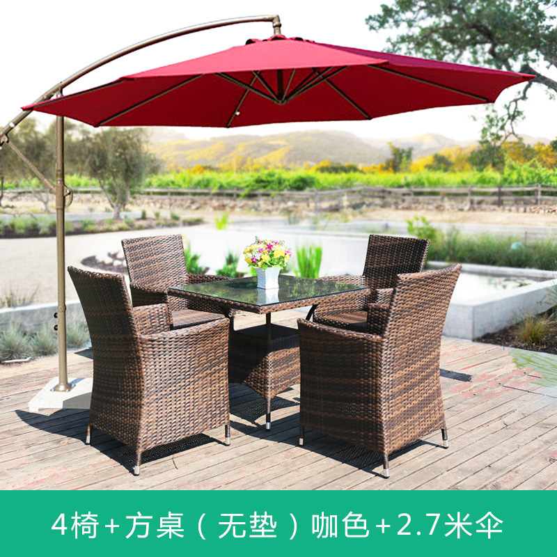 • 의자 4개 + 80x80cm 정사각형 테이블(쿠션 없음) 브라운 + 우산 2.7m 개