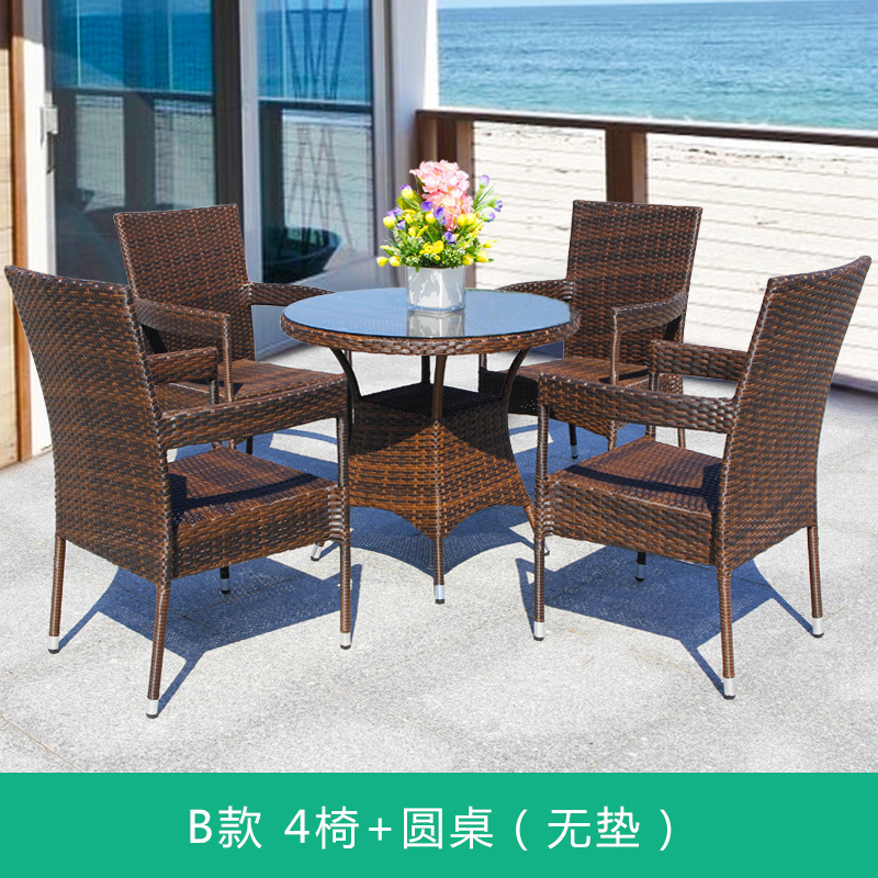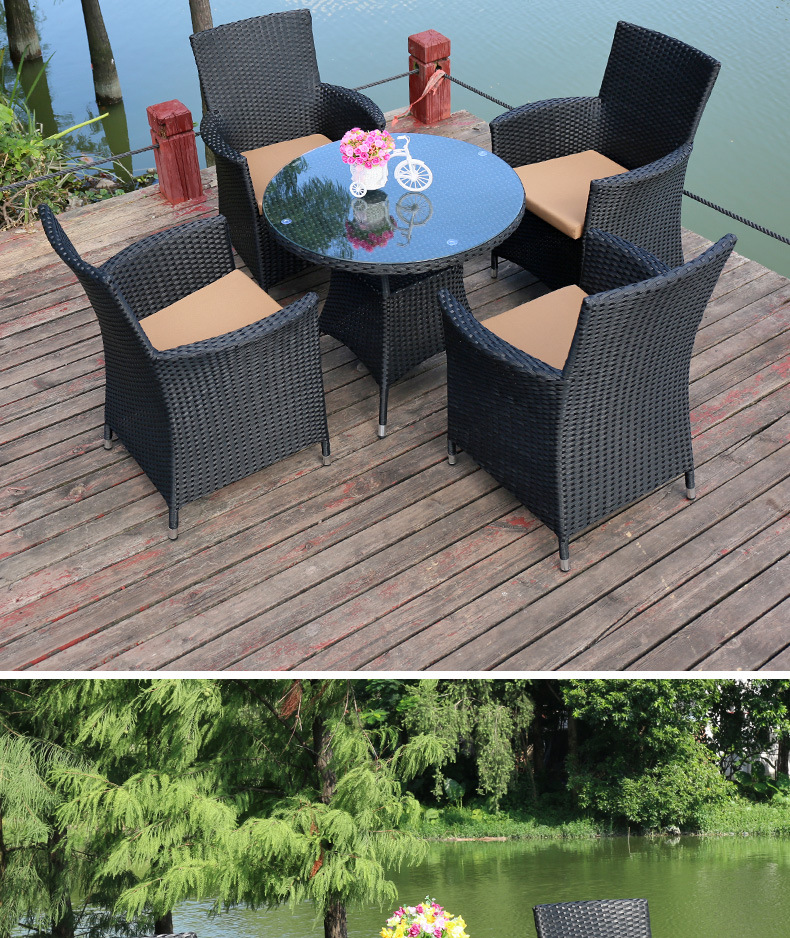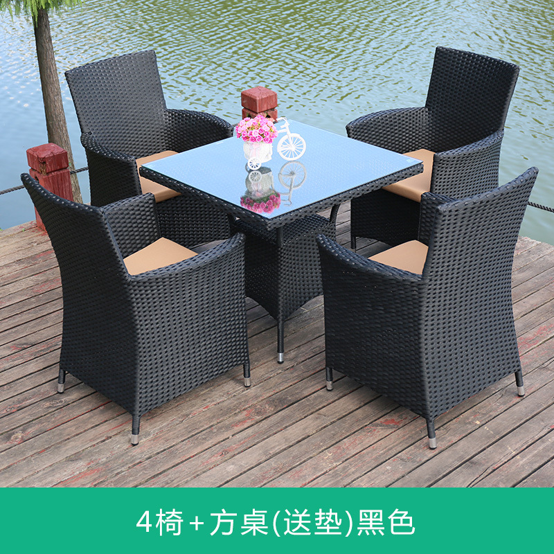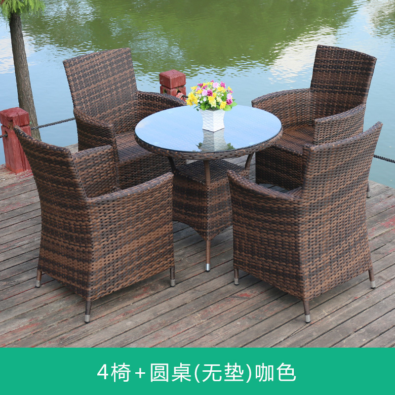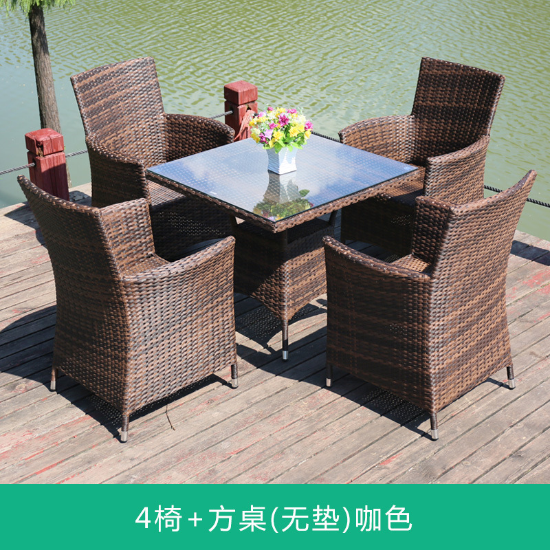 Tengjiaju 야외 테이블 및 의자 야외 정원 플라스틱 의자 발코니 야외 식사 테이블 안뜰 레저 등나무 의자 5 피스 세트스토어 가기