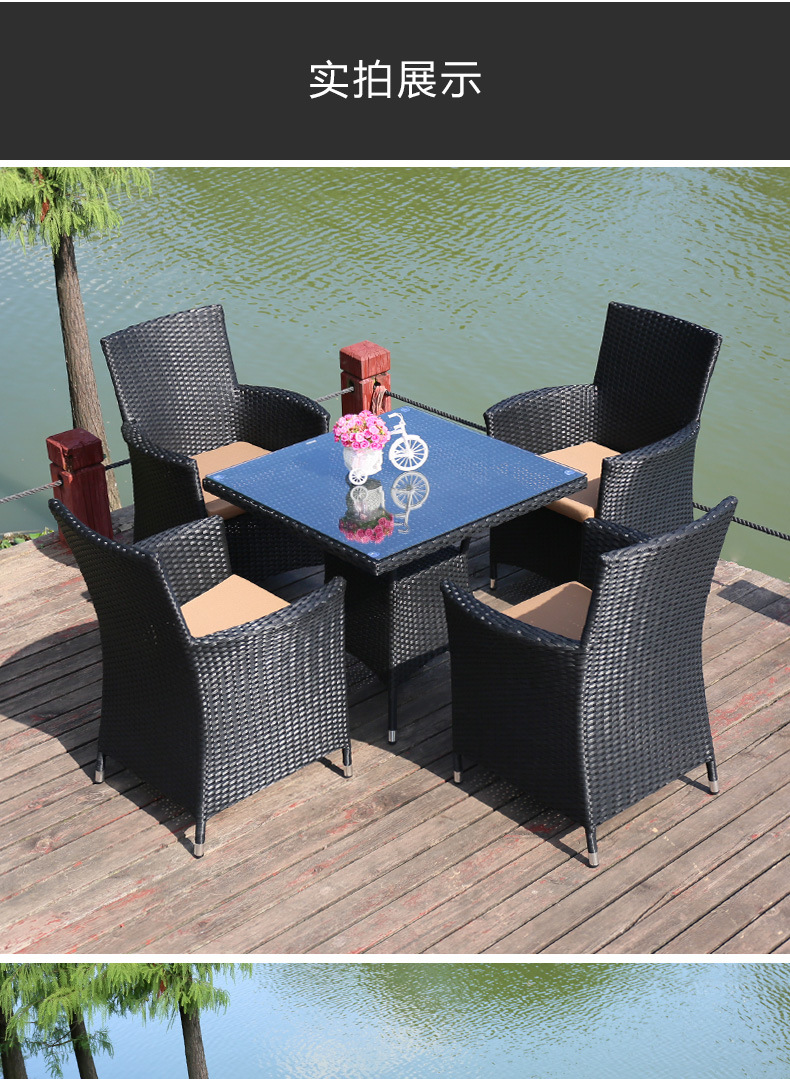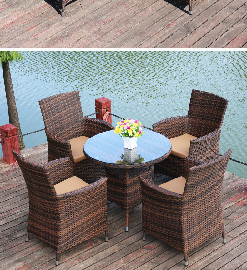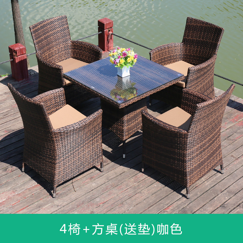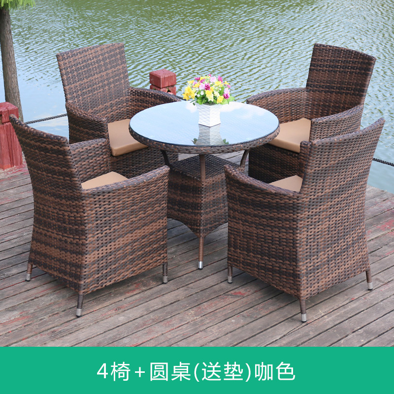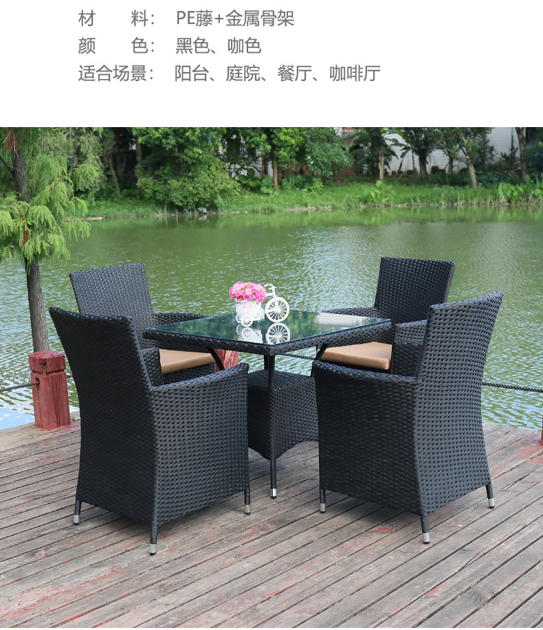 Tengjiaju 야외 테이블 및 의자 야외 정원 플라스틱 의자 발코니 야외 식사 테이블 안뜰 레저 등나무 의자 5 피스 세트스토어 가기