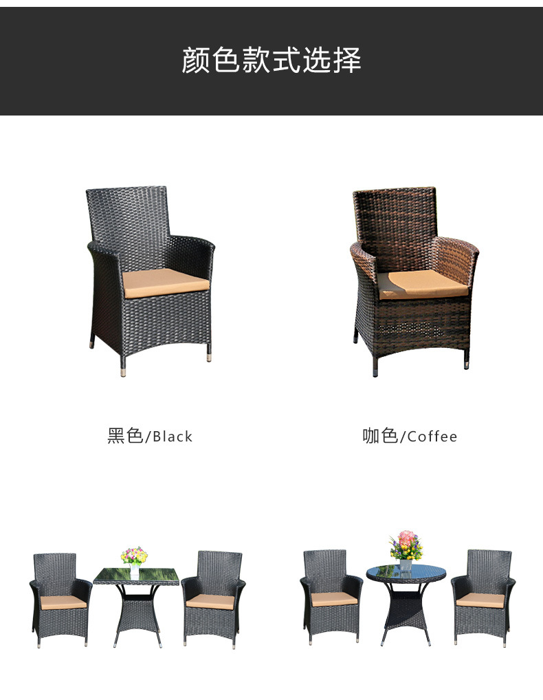 • 의자 2개 + 작은 커피 테이블(쿠션 없음) 커피 색상