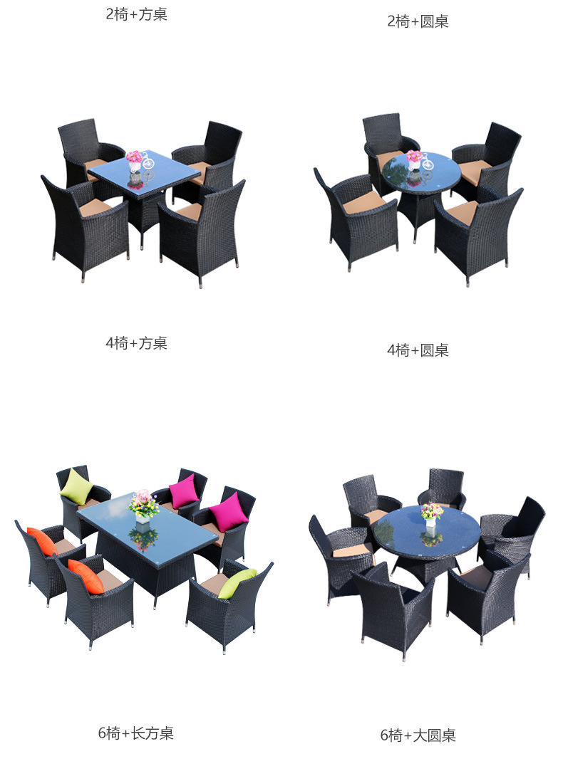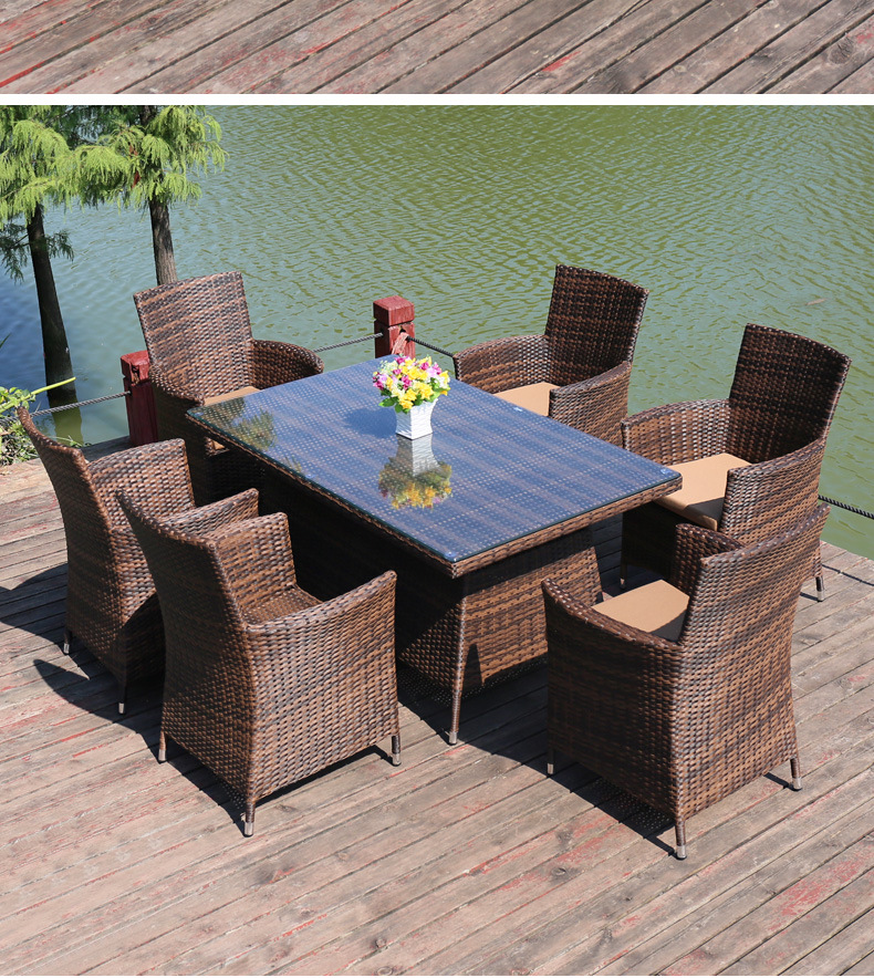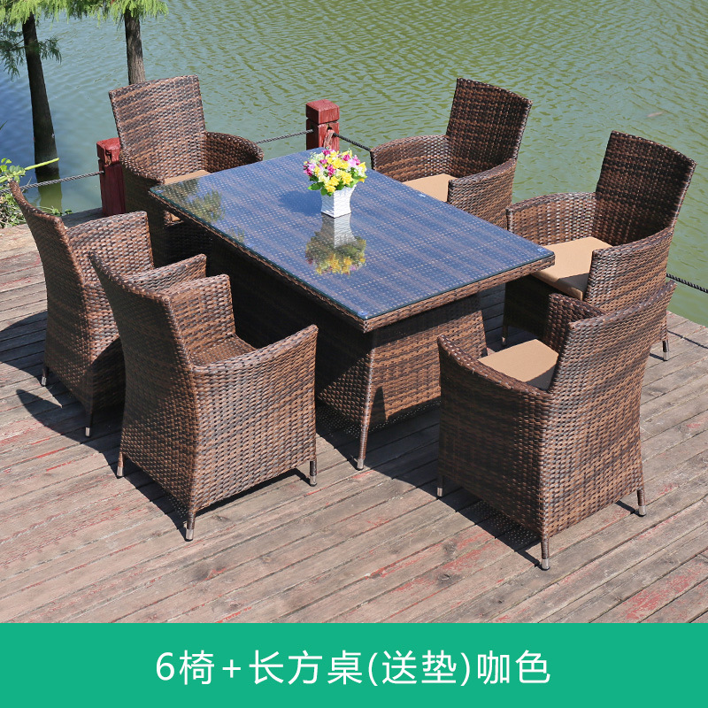 • 의자 6개 + 90x150cm 직사각형 테이블(쿠션 포함) 브라운 색상