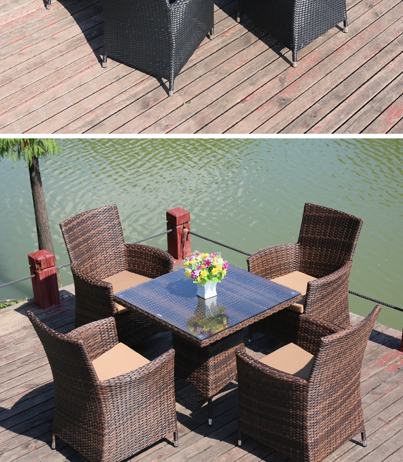 • 의자 4개 + 80x80cm 정사각형 테이블(쿠션 제외) 브라운 색상