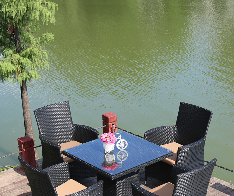 • 의자 4개 + 80x80cm 정사각형 테이블(쿠션 포함) 블랙