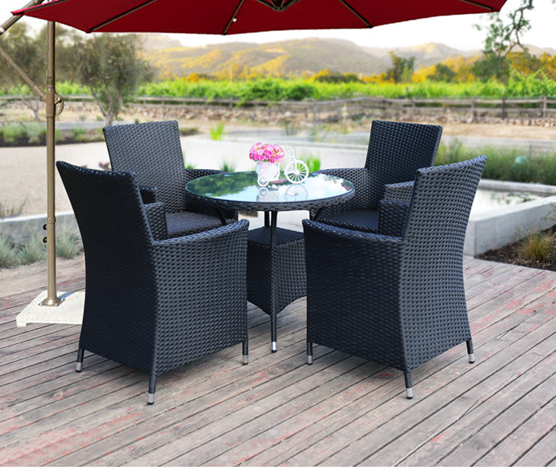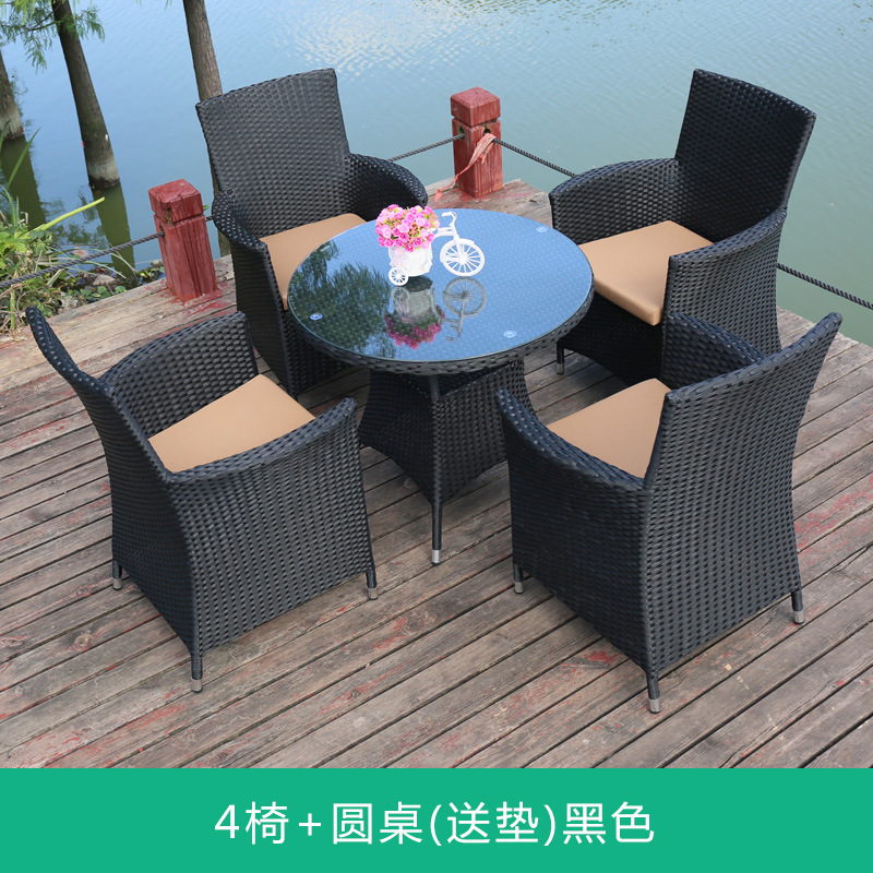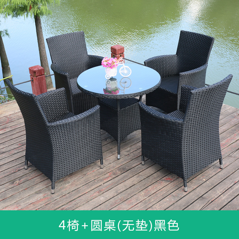 Tengjiaju 야외 테이블 및 의자 야외 정원 플라스틱 의자 발코니 야외 식사 테이블 안뜰 레저 등나무 의자 5 피스 세트