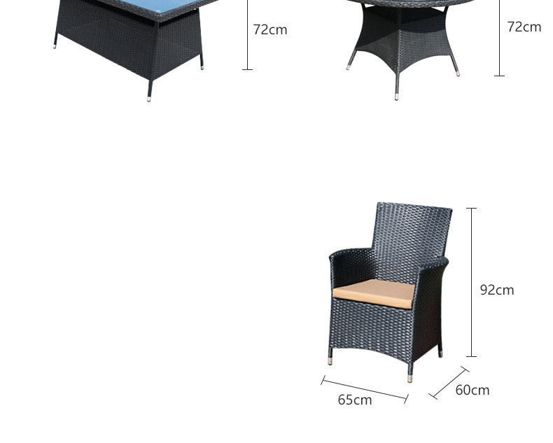 • 의자 4개 + 80x80cm 원형 테이블(쿠션 제외) 블랙