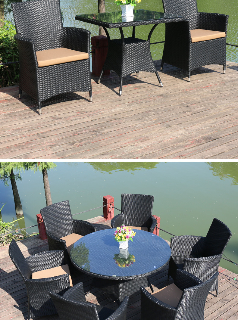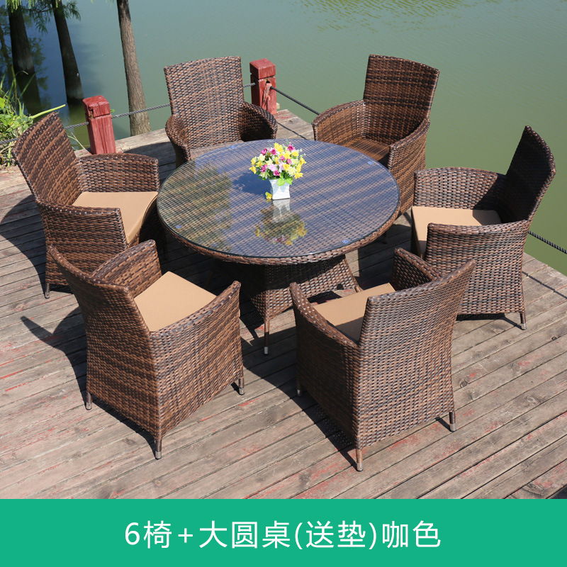• 의자 6개 + 120x120cm 원형 테이블 1개(쿠션 포함) 브라운 색상