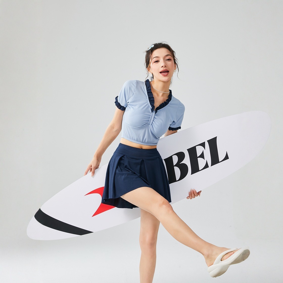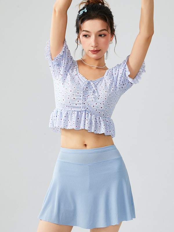 수영복 여성 여름 꽃 신선한 스타일 새로운 온천 비키니 분할 투피스 세트 레이스 업 섹시한 슬림 수영복