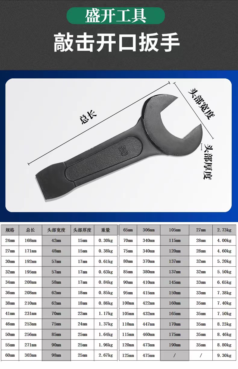공장 도매 헤비 듀티 노크 렌치 덤프 렌치 산업 등급 오픈 엔드 렌치 두꺼운 싱글 헤드 스트레이트 핸들 렌치