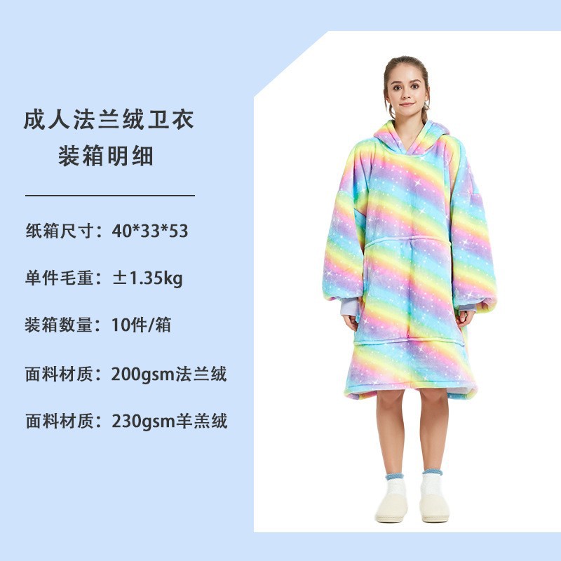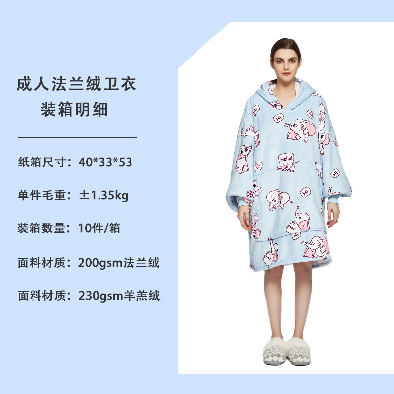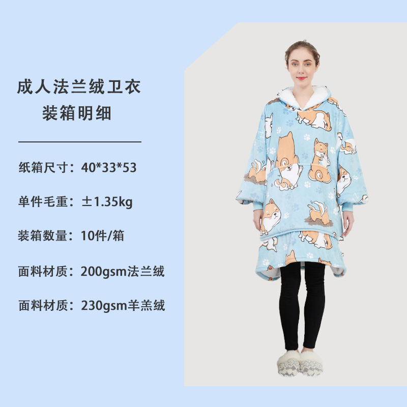 成人96CM:200gsm法兰绒+230gsm羊羔绒,单件克重:1300克左右,单件尺寸包装:40*33*6CM,真空卡纸+丝带,纸箱尺寸是:40*33*53CM,10件一箱,一箱重量:14kg