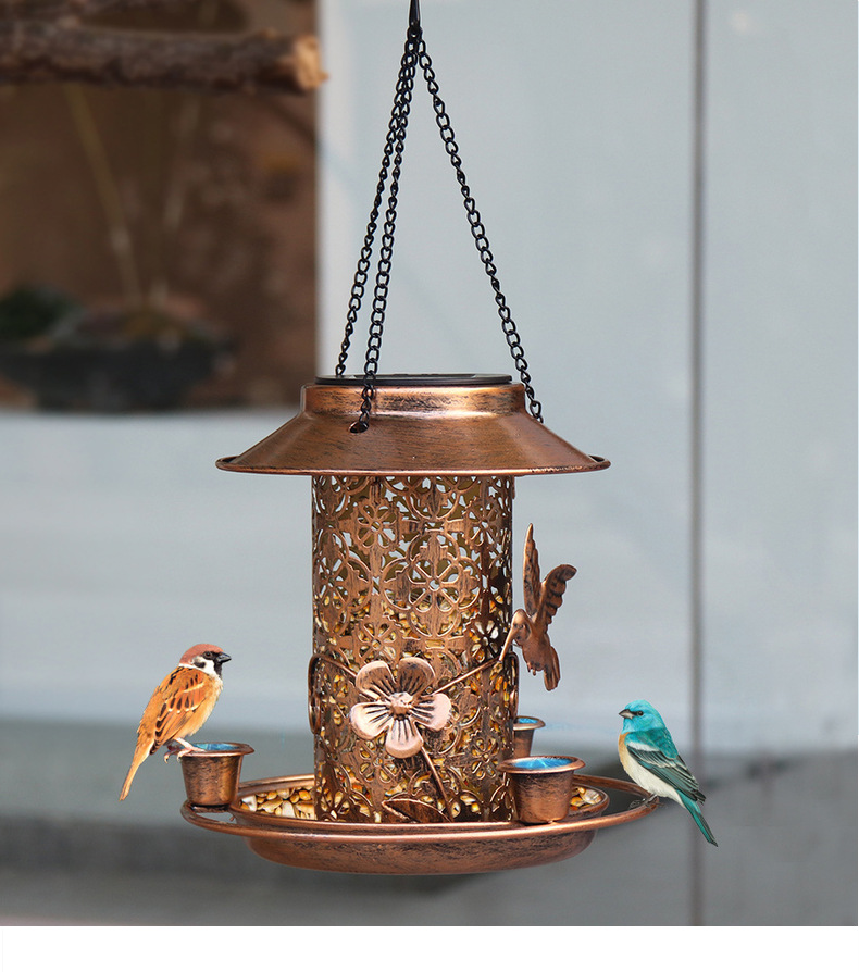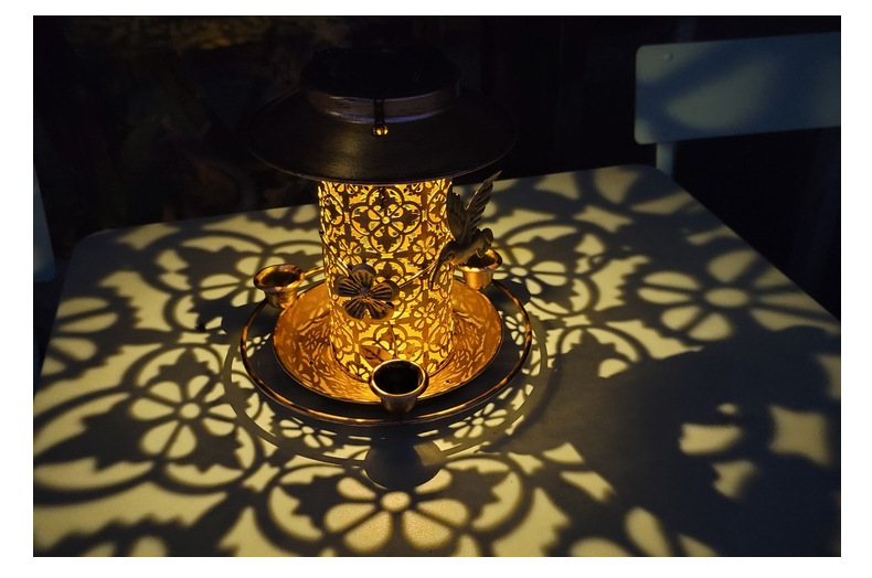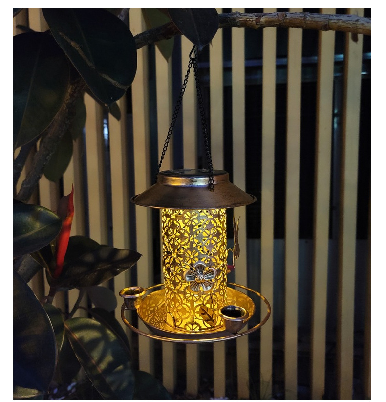 새로운 철 태양 조류 먹이 물 공급 장치 안뜰 교수형 벌새 프로젝션 장식 조명 벌새 먹이 장치