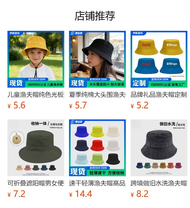 순면 어부 모자 맞춤 로고 인쇄 야외 등산용 부모-자녀 자외선 차단 모자 남성용 단색 플랫 챙 모자 여성용 도매스토어 가기
