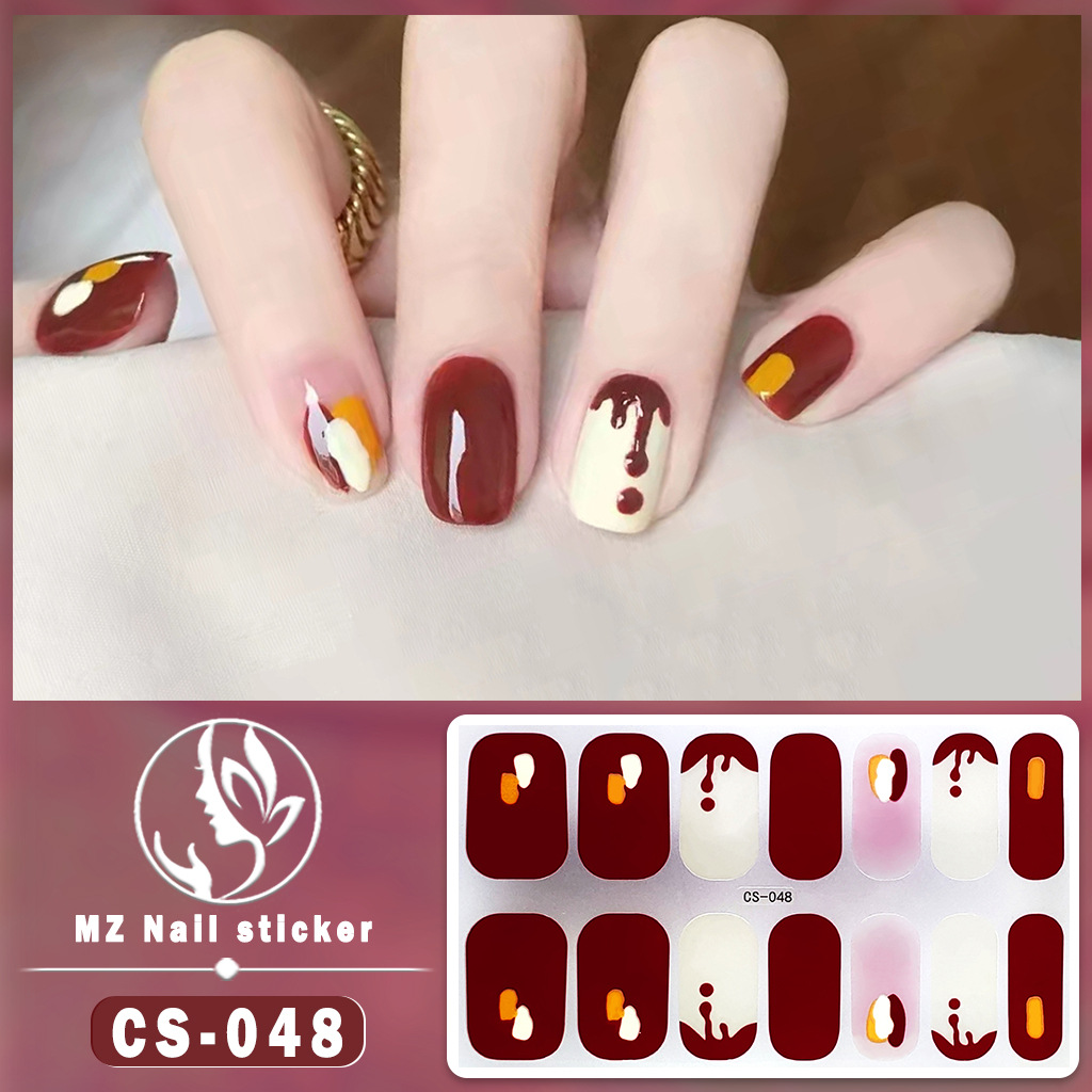 비 베이킹 젤 작은 신선한 방수 내구성 3D 네일 스티커 패치 여성용 분리형 웨어러블 네일 아트 스티커 풀 스티커