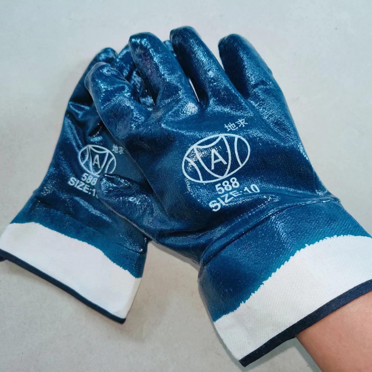 디큐 588 블루 대형 오일 방지 전면 코팅 장갑 내마모성 방유 블루 니트릴 캔버스 두꺼운 용접 작업 보호 장갑