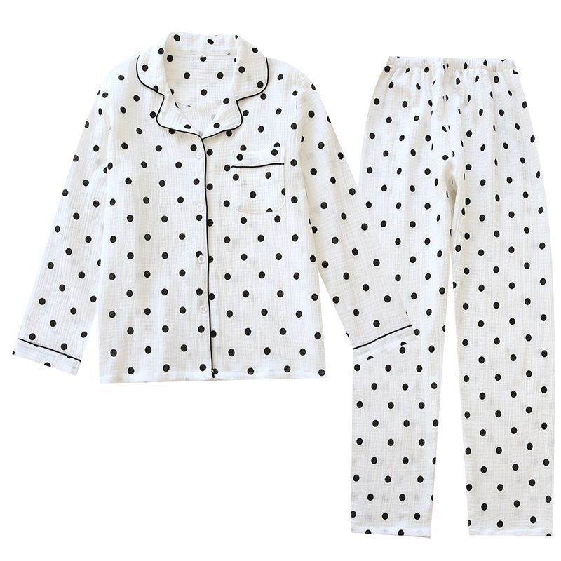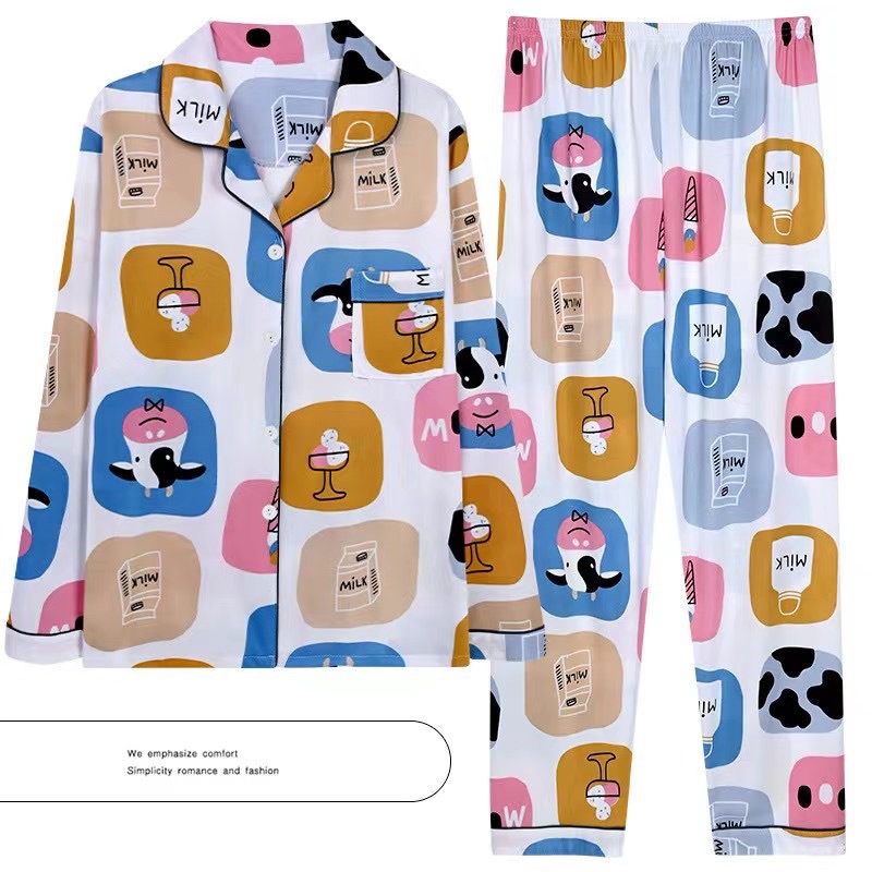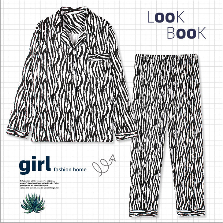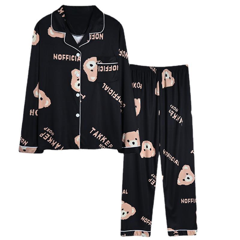 여성용 크로스보더 봄, 가을 카디건 잠옷, 라펠 칼라, 긴팔 바지, 귀여운 만화 홈웨어 세트, 인스 스타일스토어 가기