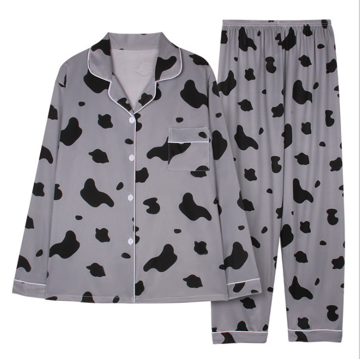 여성용 크로스보더 봄, 가을 카디건 잠옷, 라펠 칼라, 긴팔 바지, 귀여운 만화 홈웨어 세트, 인스 스타일