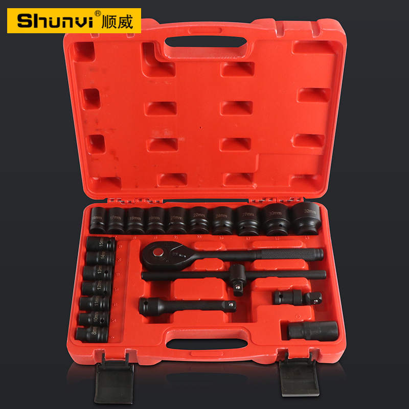 자동 수리 23 피스 슬리브 세트 12.5mm 공압 슬리브 래칫 세트 대형 플라이 짧은 소매 세트 조합 도구스토어 가기