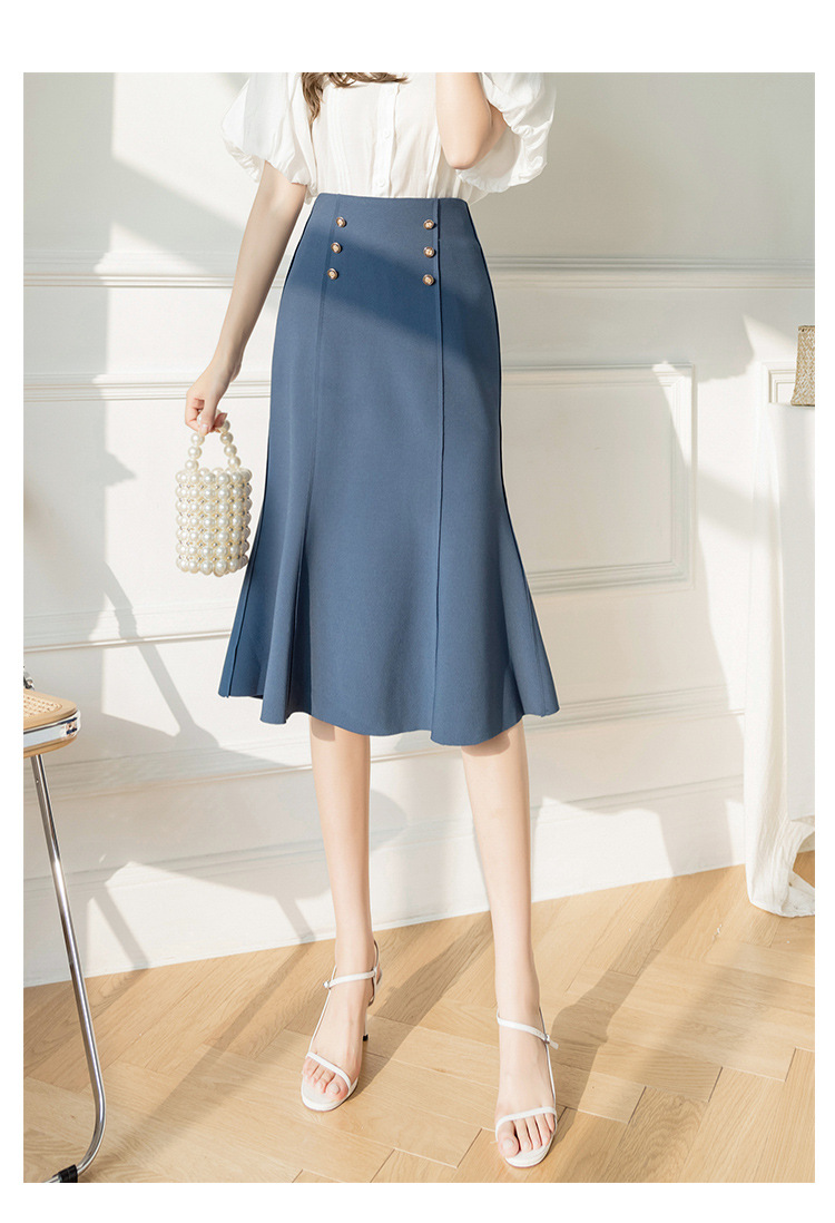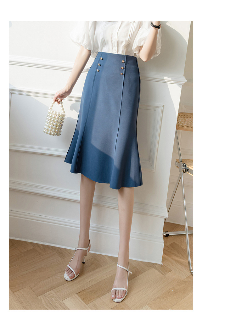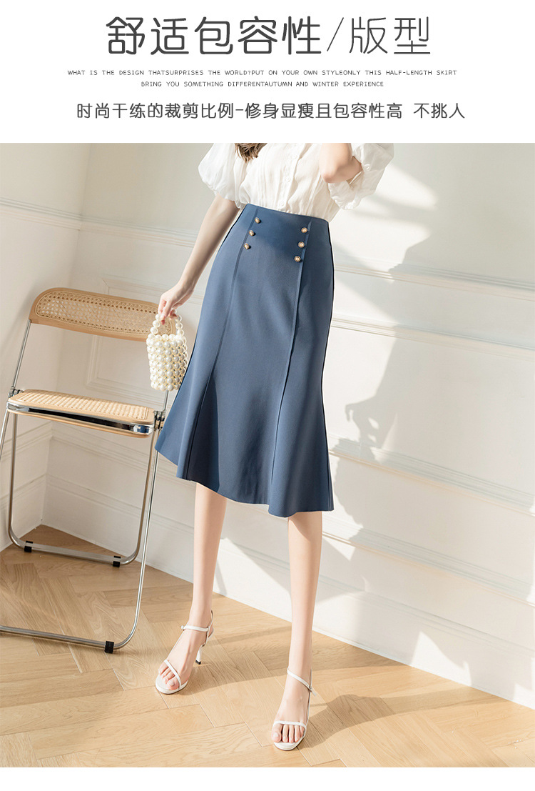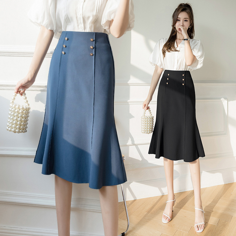 여자의 엉덩이 덮는 세트 스커트 2023 봄과 여름 새로운 하이 웨이스트 슬리밍 A 라인 피쉬 테일 스커트 OL 중간 길이 전문 스커트스토어 가기