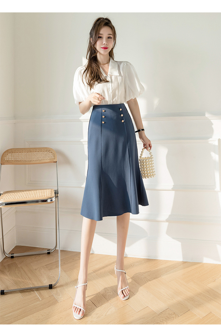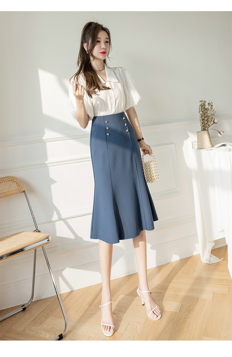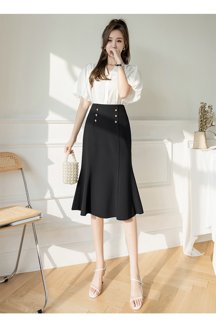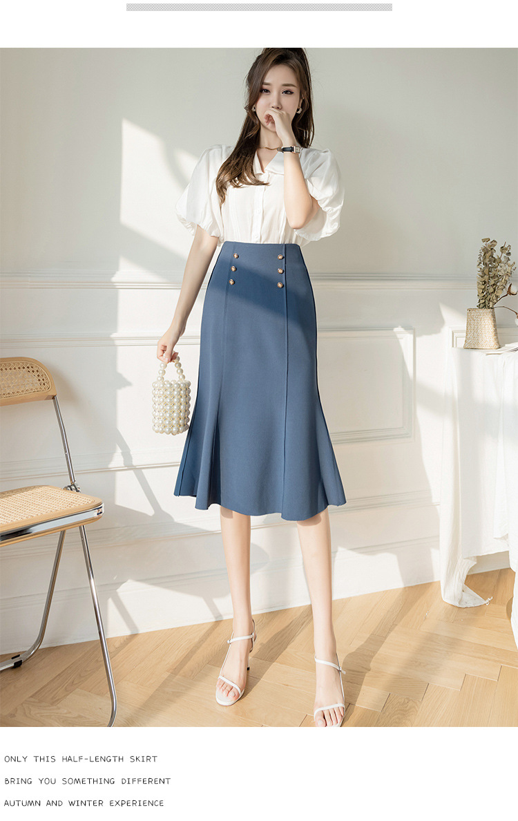 여자의 엉덩이 덮는 세트 스커트 2023 봄과 여름 새로운 하이 웨이스트 슬리밍 A 라인 피쉬 테일 스커트 OL 중간 길이 전문 스커트스토어 가기