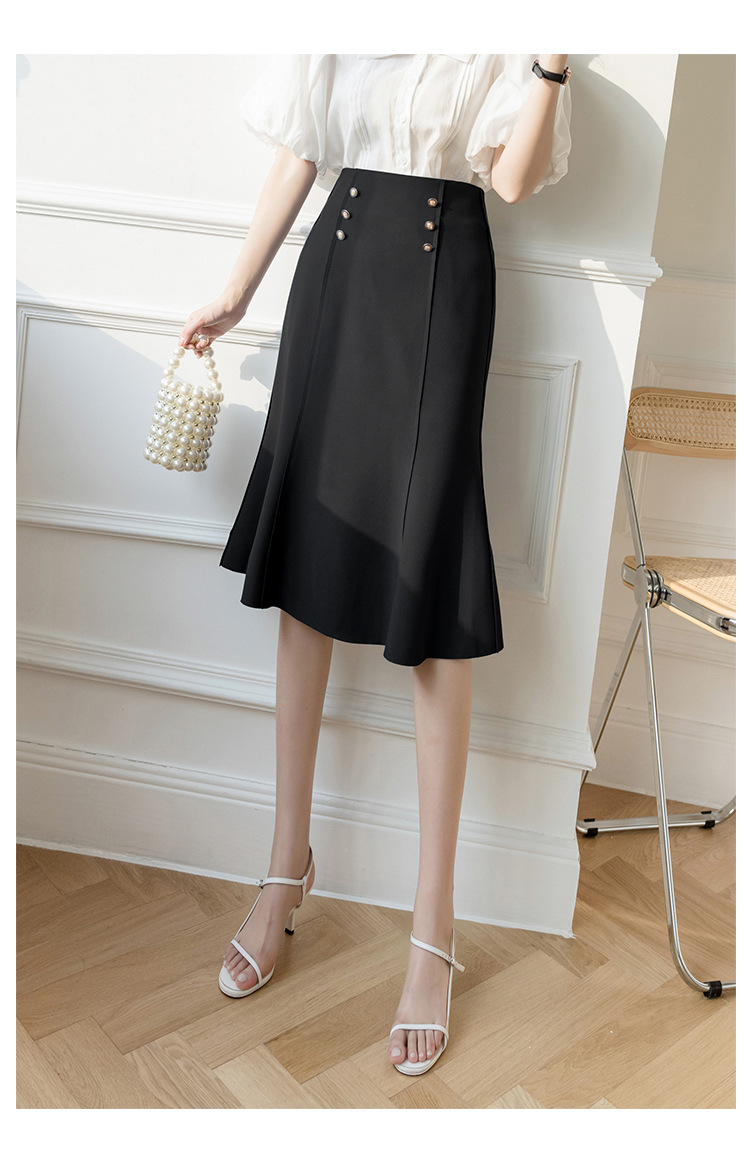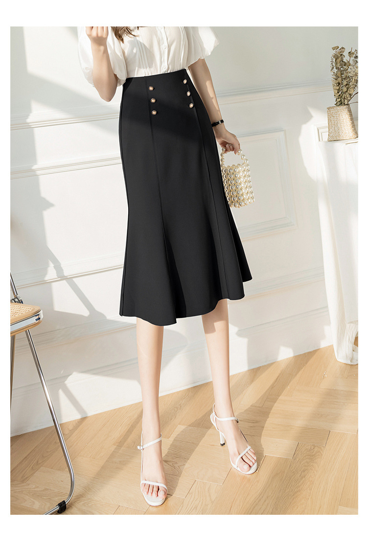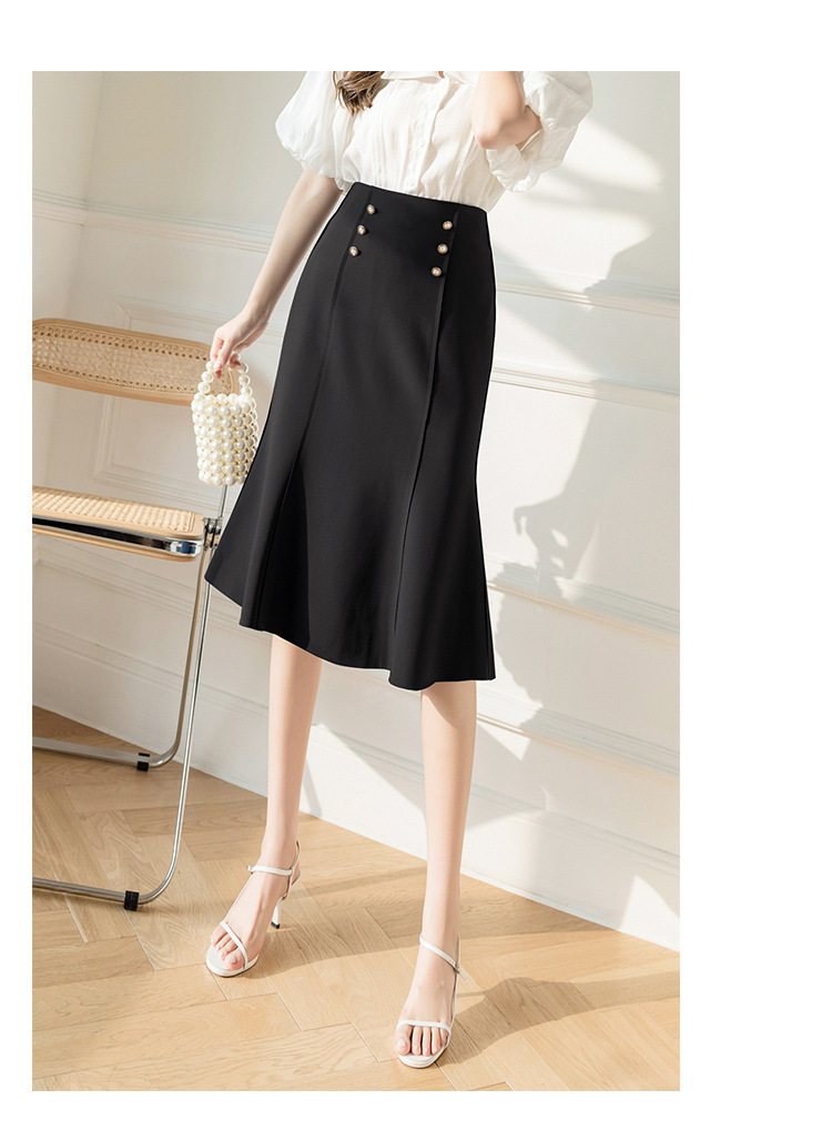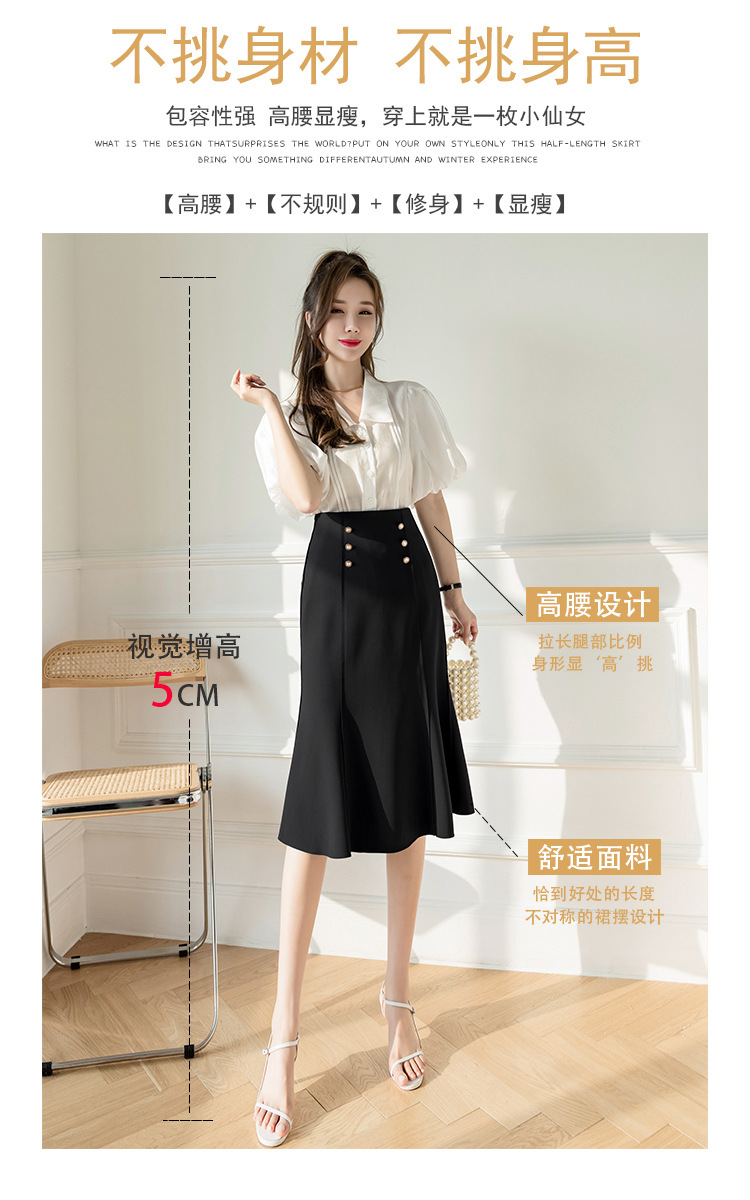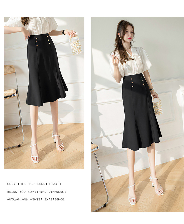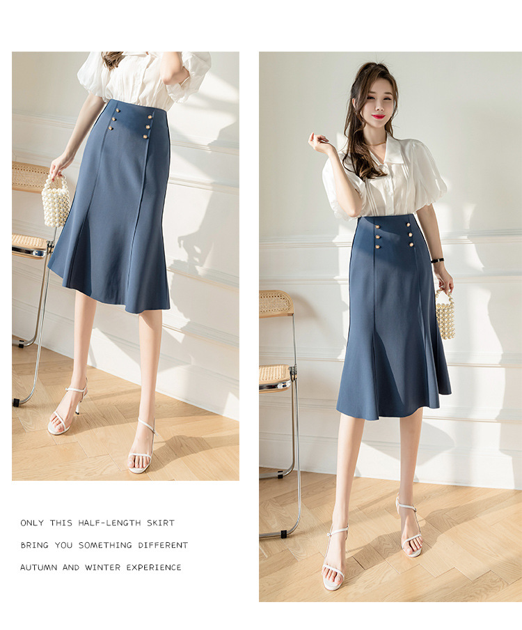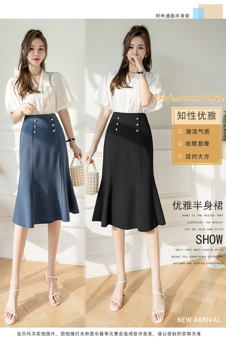 여자의 엉덩이 덮는 세트 스커트 2023 봄과 여름 새로운 하이 웨이스트 슬리밍 A 라인 피쉬 테일 스커트 OL 중간 길이 전문 스커트