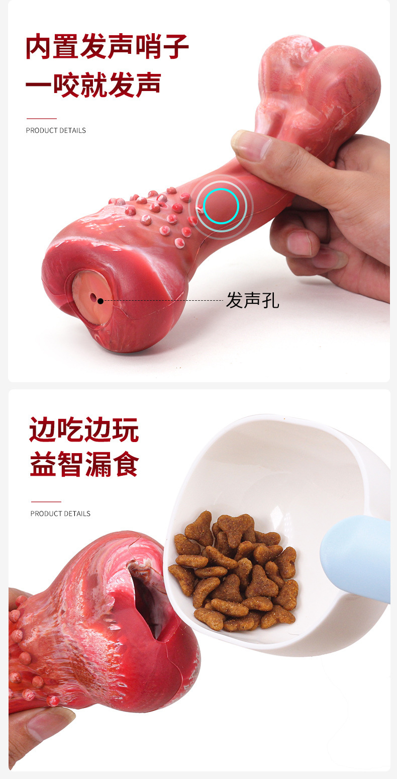 内置发声哨子,一咬就发声,漏食设计,边玩边吃,藏食设计.