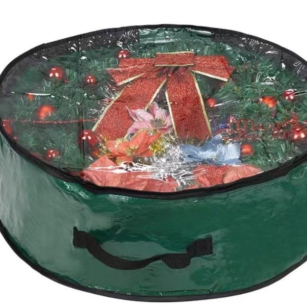 크리스마스 화환 및 크리스마스 링 보관용 가방, 빨간색 PE와 PVC 단면 투명, 전자상거래 공장 직판스토어 가기