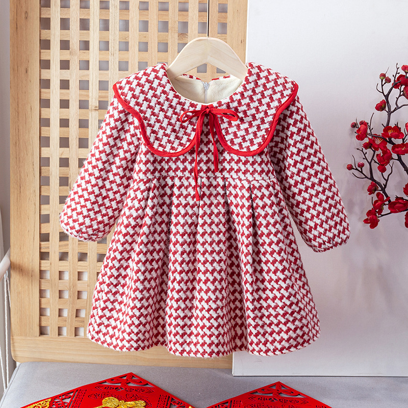 소녀 원피스 가을과 겨울 2023 새로운 겨울 서양 스타일 아동 기모 한국 공주 원피스 아동복 겨울 치마스토어 가기