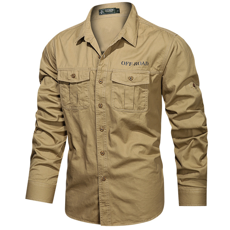 2025 봄, 가을 새 셔츠 남성 긴팔 순수 코튼 캐주얼 솔리드 컬러 셔츠 청년 및 중년 작업복 슬림 자켓