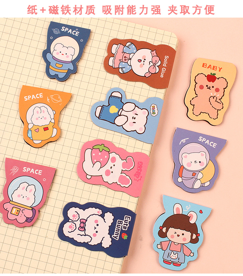 마그네틱 북마크 크리에이티브 만화 동물 패턴 페이지 홀더 3337 북마크 버클 싱글 포장 학생 학용품
