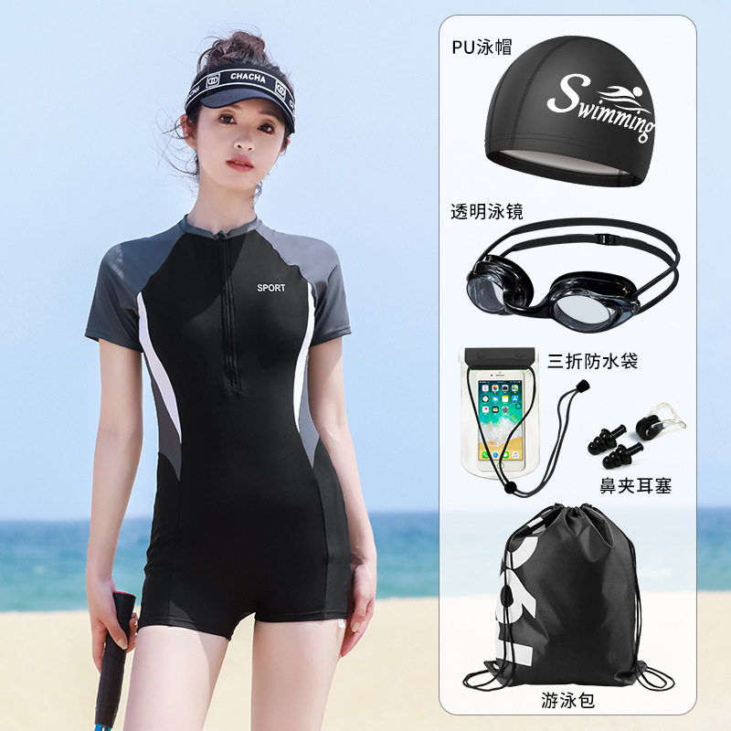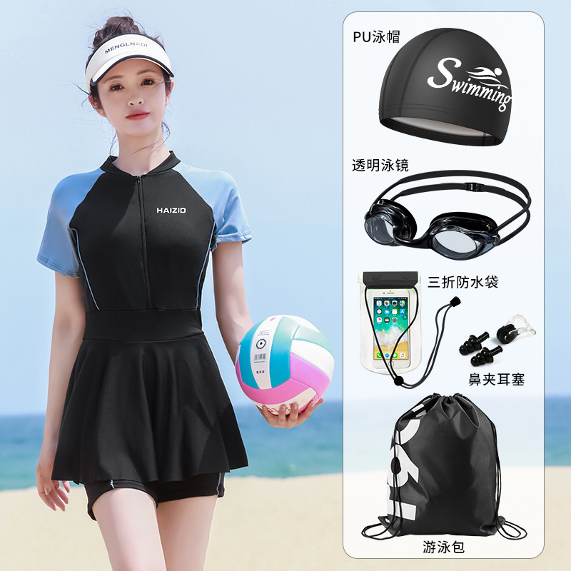 수영복 여성용 고급 2025 새로운 배꼽 덮힌 슬리밍 수영복 원피스 보수적 인 긴팔 온천 반팔 수영복 도매스토어 가기