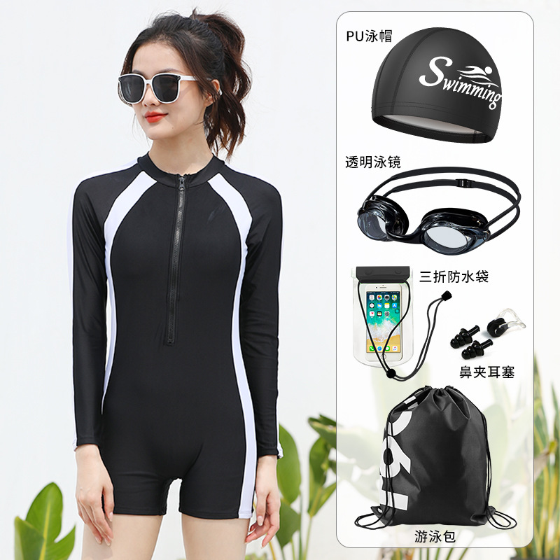 • E61 긴팔 수영복 + 605 블랙 + 5088 블랙 + 코 클립 귀마개 블랙 + 70% off 방수 가방 블랙 + T90 흑백