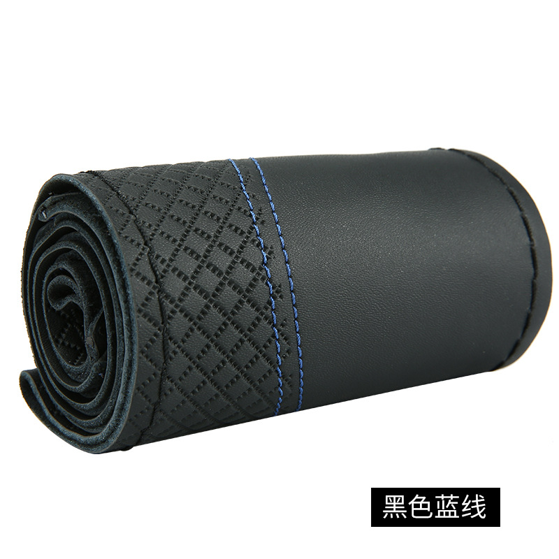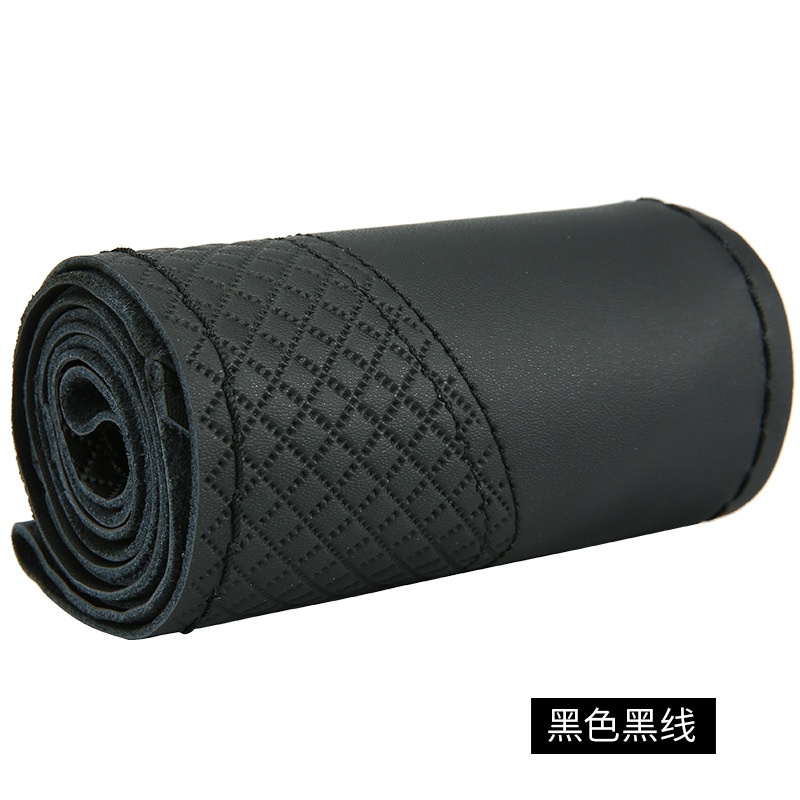 소가죽 엠보싱 더블 라인 핸드 스티치 스티어링 휠 커버의 첫 번째 레이어 사계절 유니버설 리얼 소가죽 자동차 핸들 커버 #1134스토어 가기