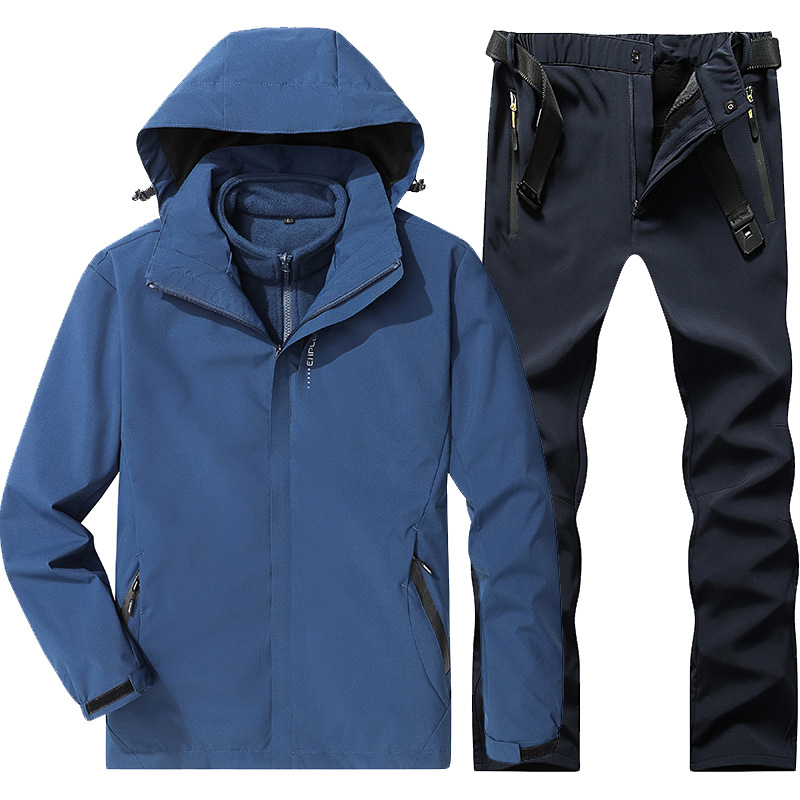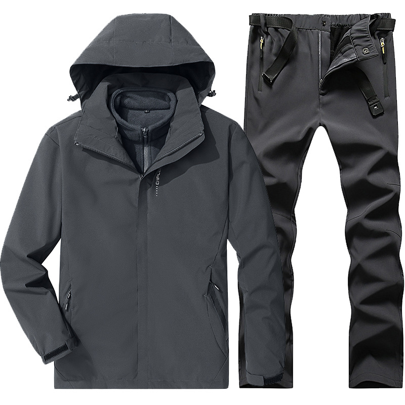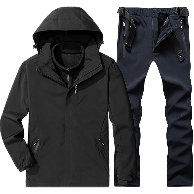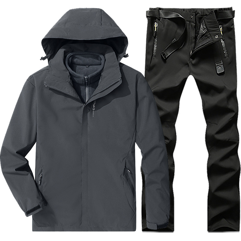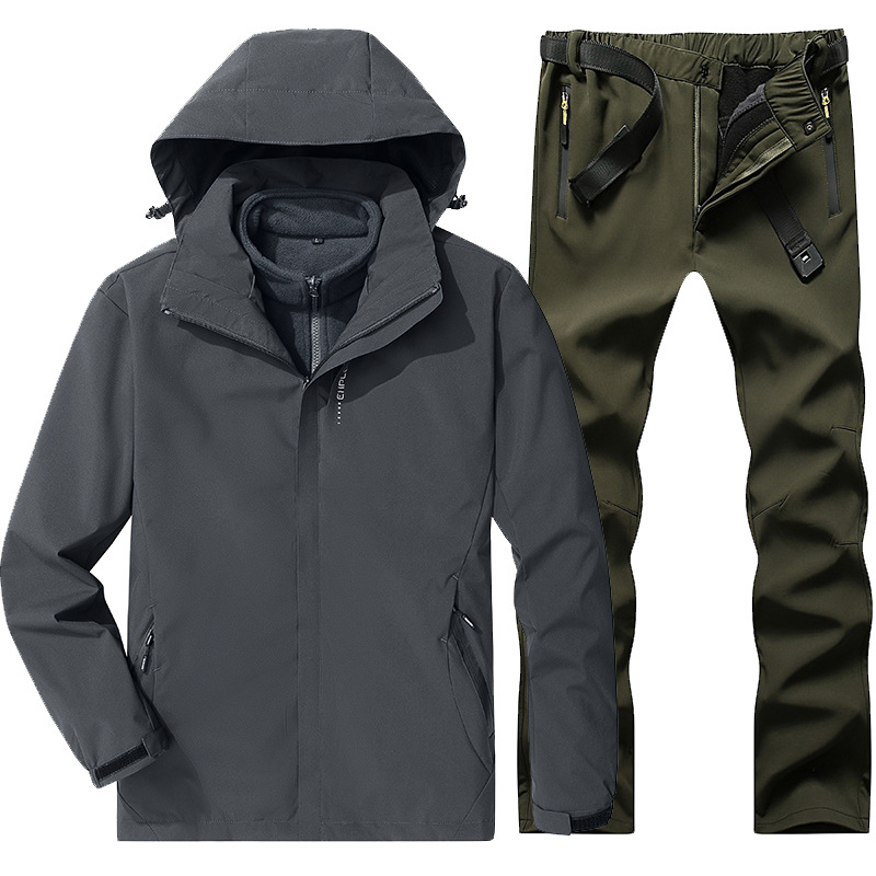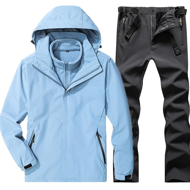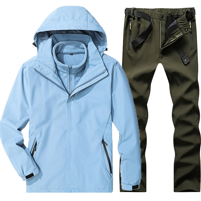 야외 폭행 의류 남성과 여성의 3-in-one 탈착 가을과 겨울 방풍 방수 기모 두꺼운 등산 의류 바지 커버
