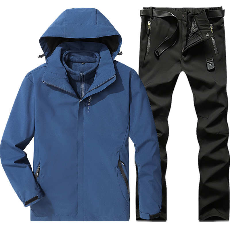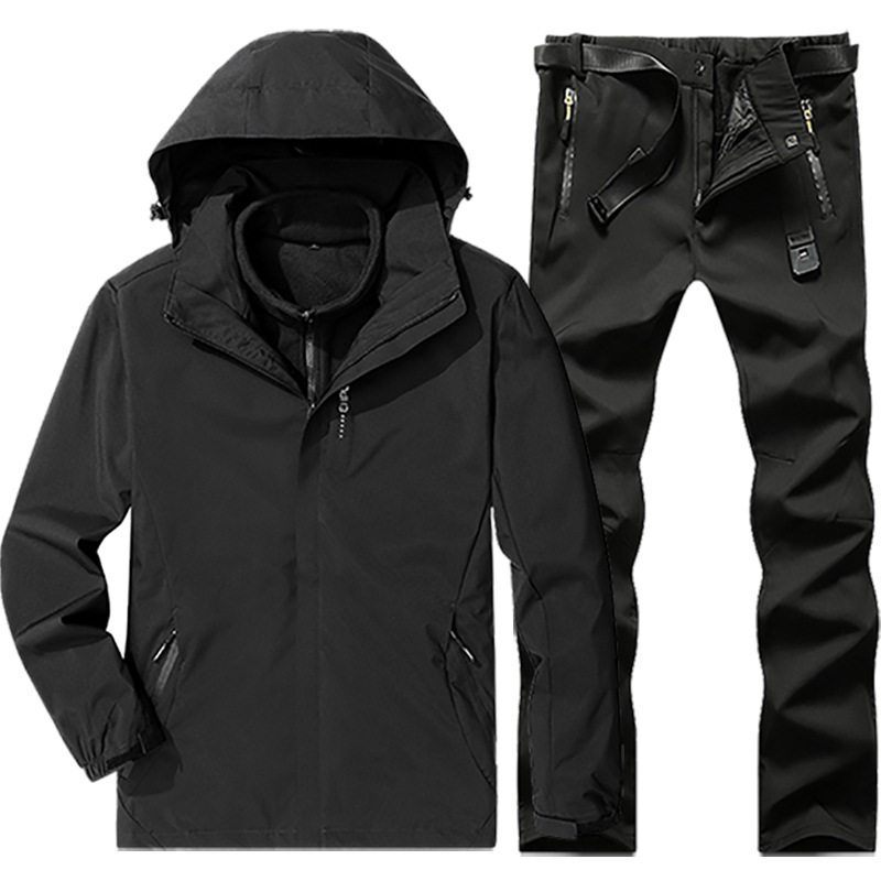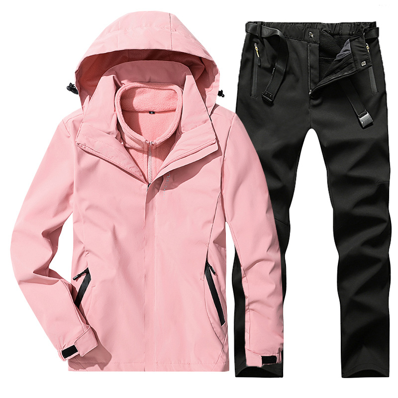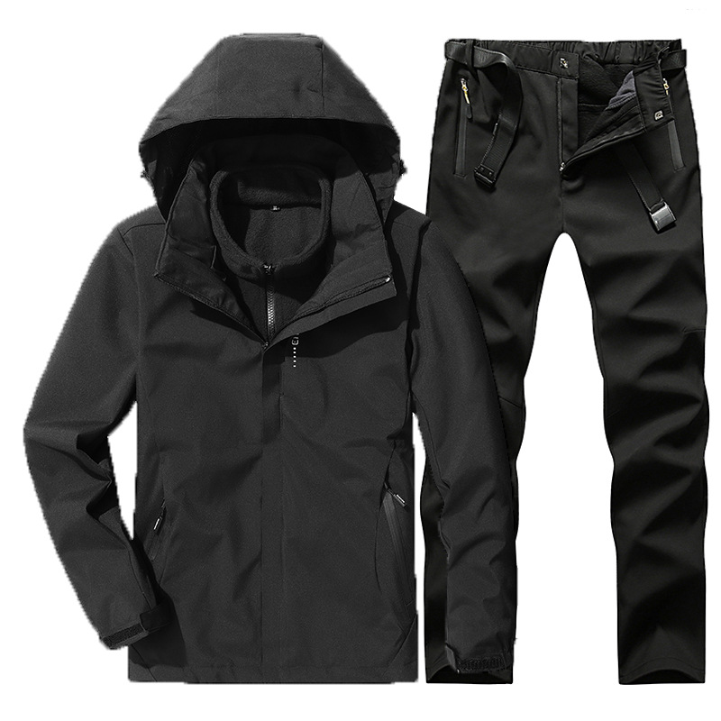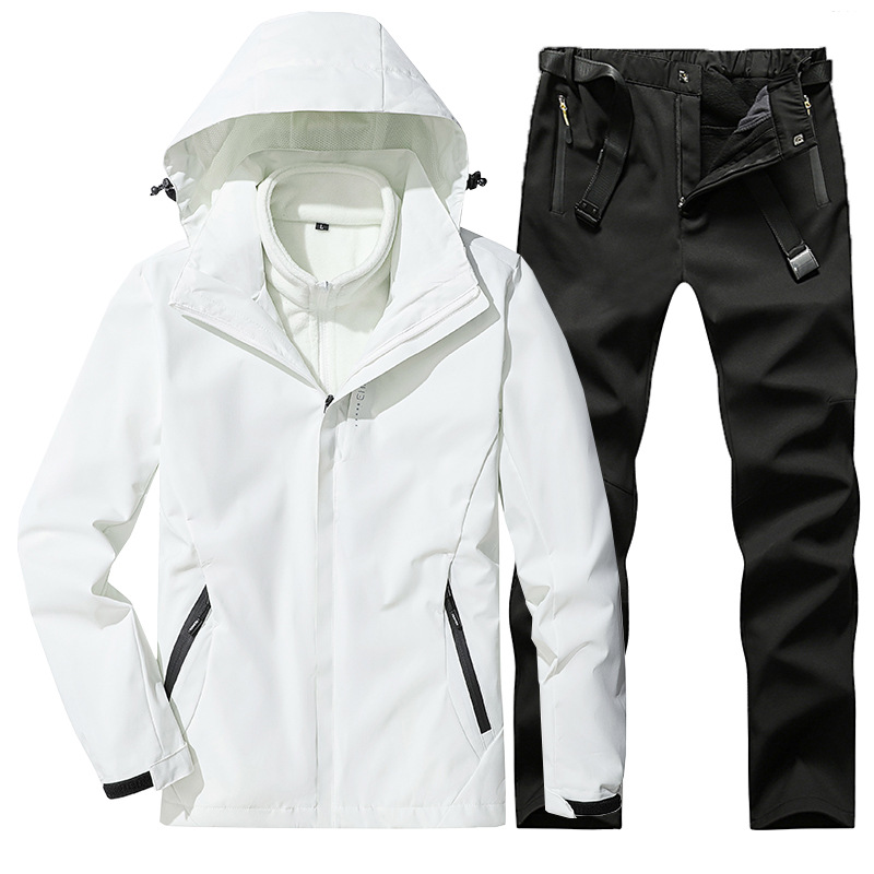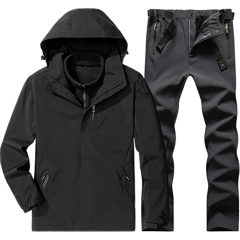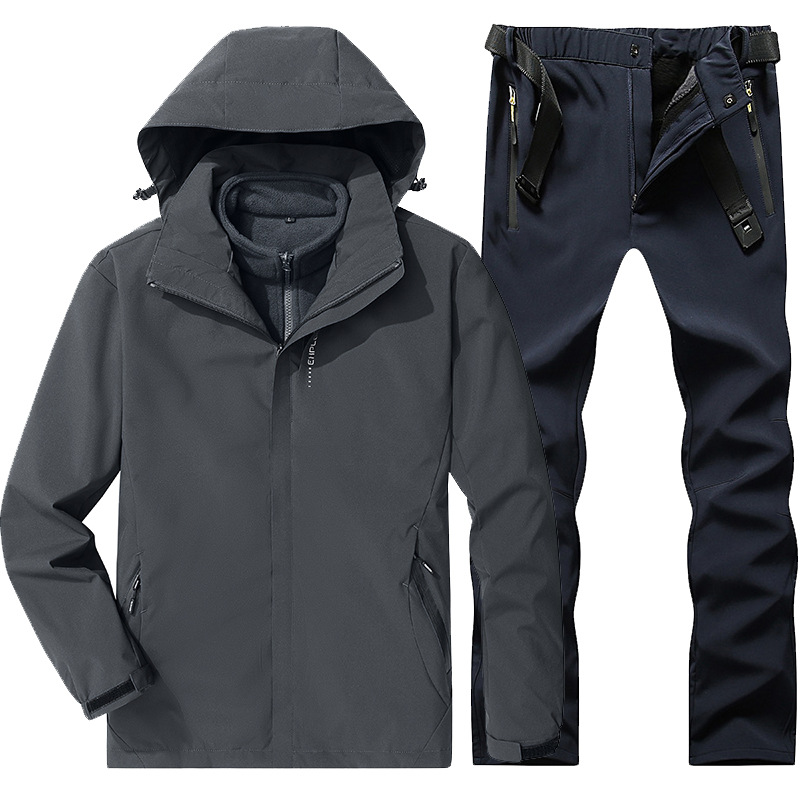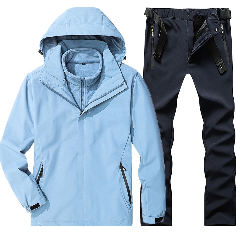 야외 폭행 의류 남성과 여성의 3-in-one 탈착 가을과 겨울 방풍 방수 기모 두꺼운 등산 의류 바지 커버