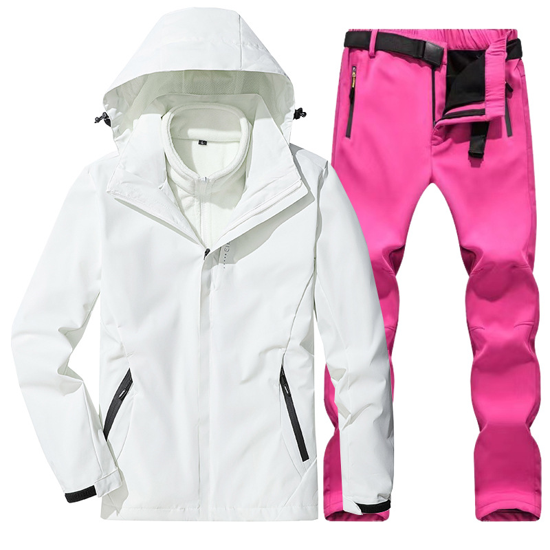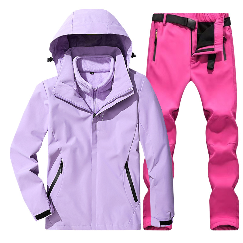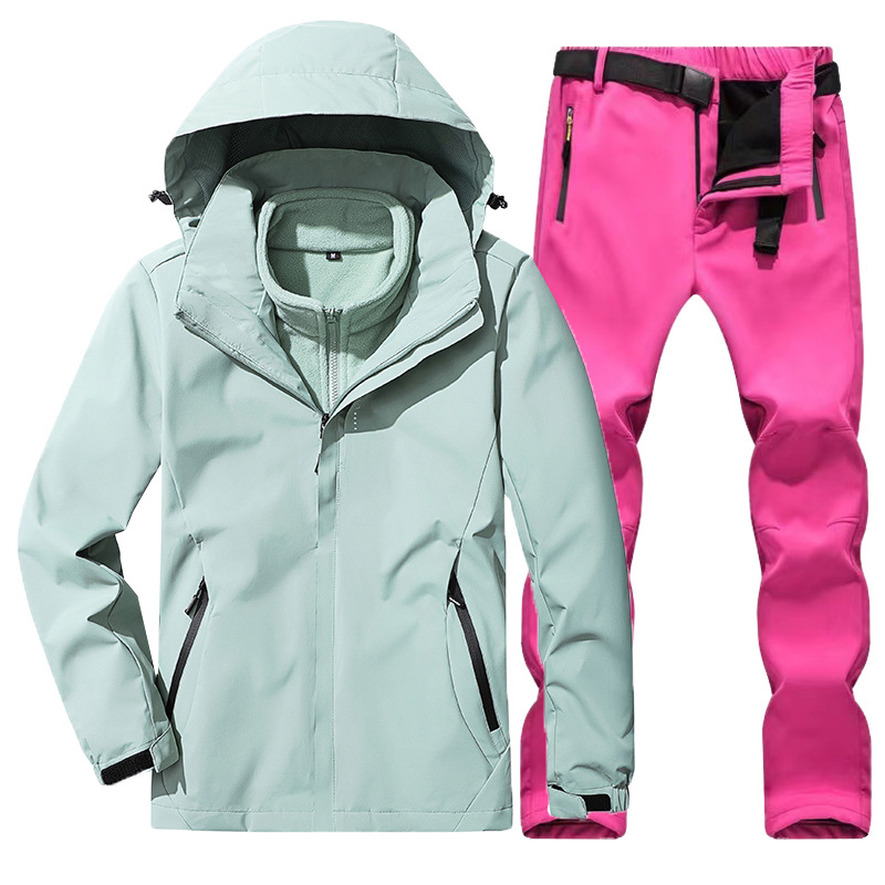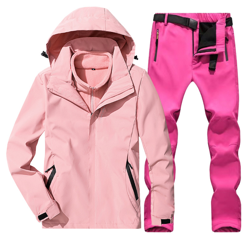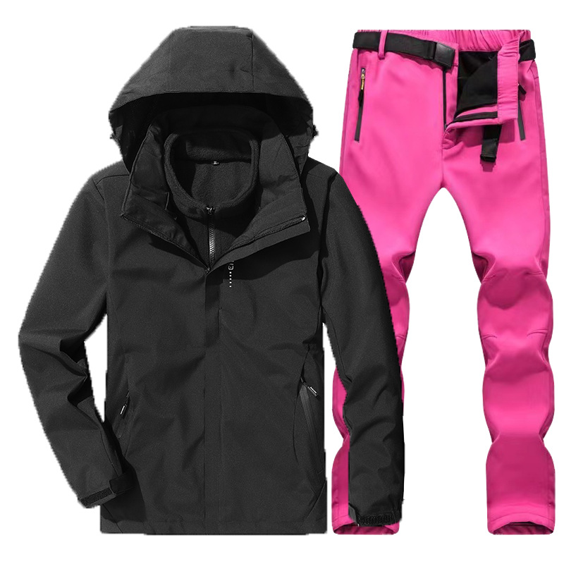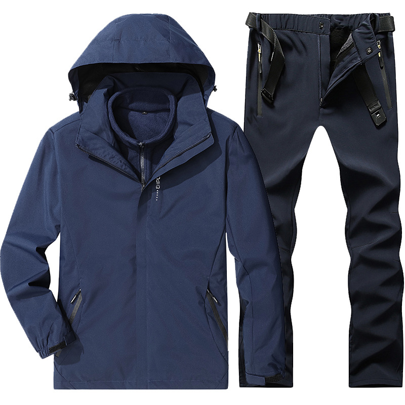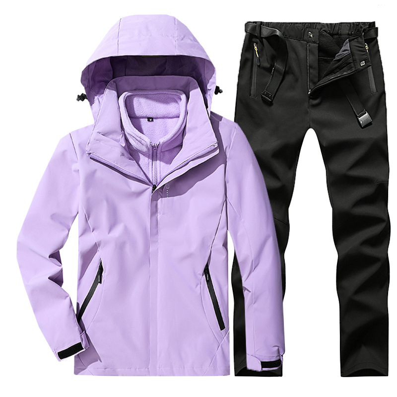 야외 폭행 의류 남성과 여성의 3-in-one 탈착 가을과 겨울 방풍 방수 기모 두꺼운 등산 의류 바지 커버