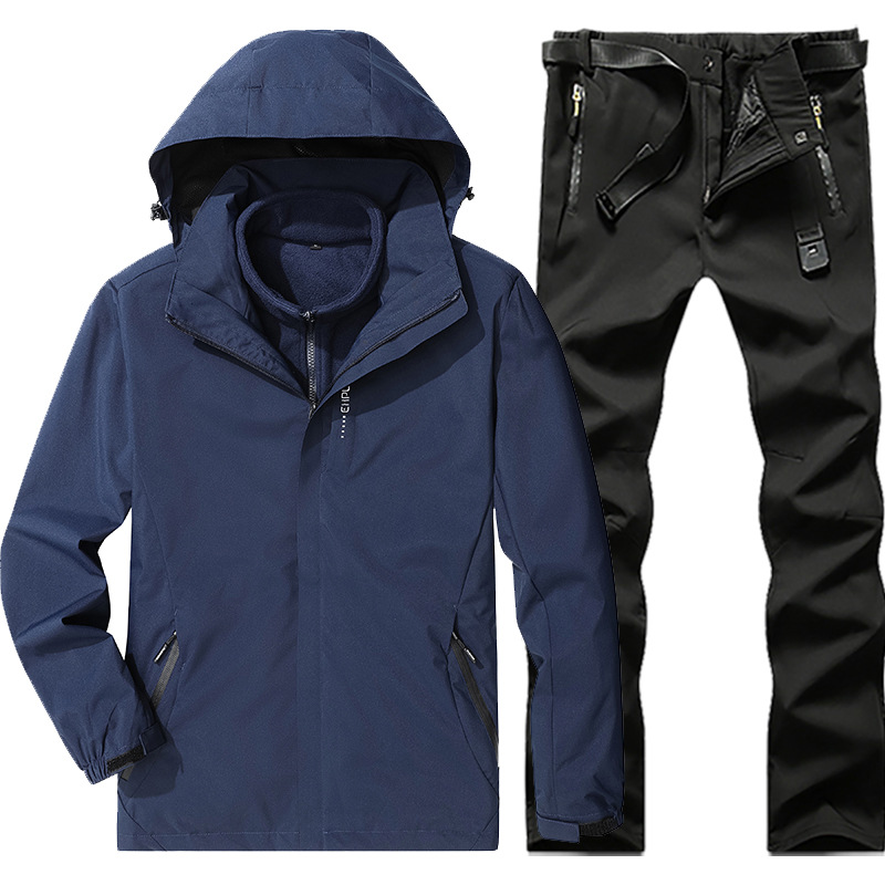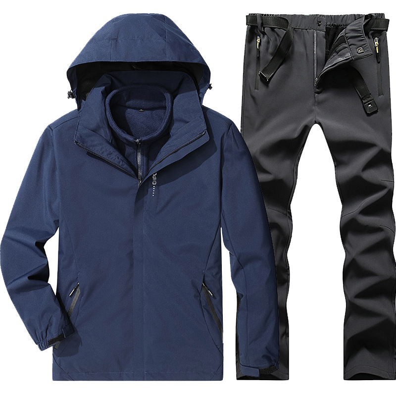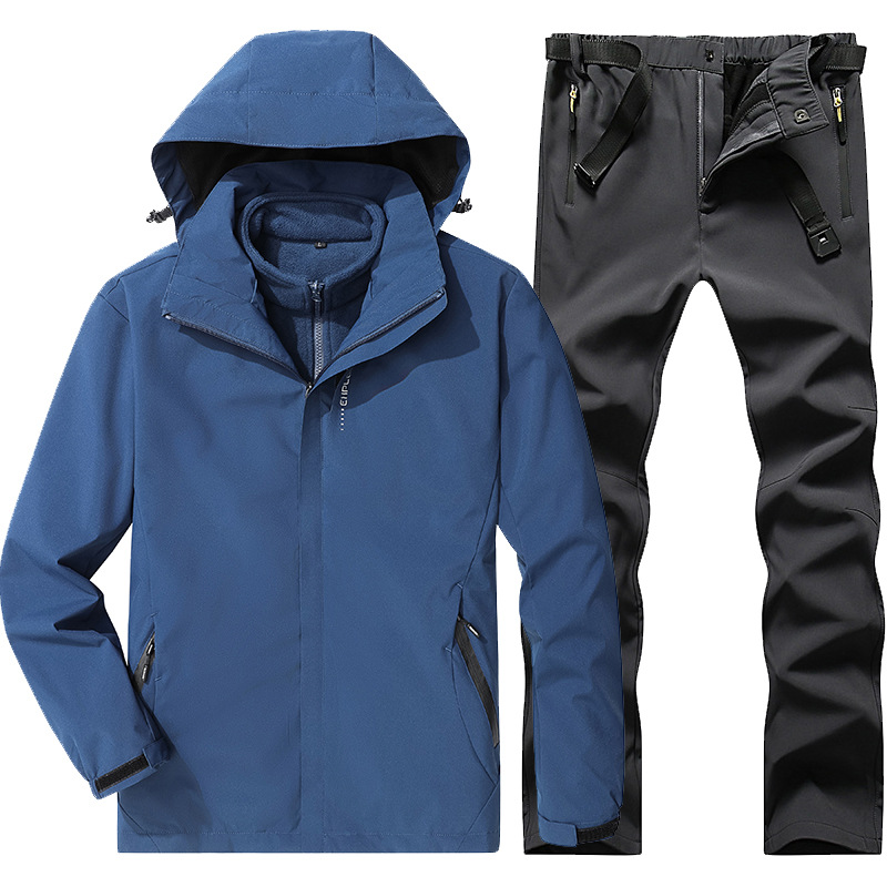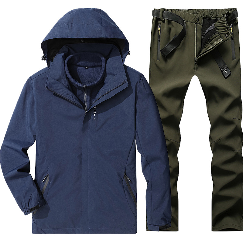 야외 폭행 의류 남성과 여성의 3-in-one 탈착 가을과 겨울 방풍 방수 기모 두꺼운 등산 의류 바지 커버스토어 가기