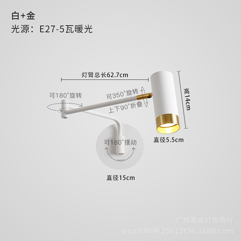 침실 침대 옆 램프 북유럽 현대 텔레스코픽 접이식 연구 독서 램프 로커 벽 램프 미니멀리스트 빛 럭셔리 거실 벽 램프스토어 가기