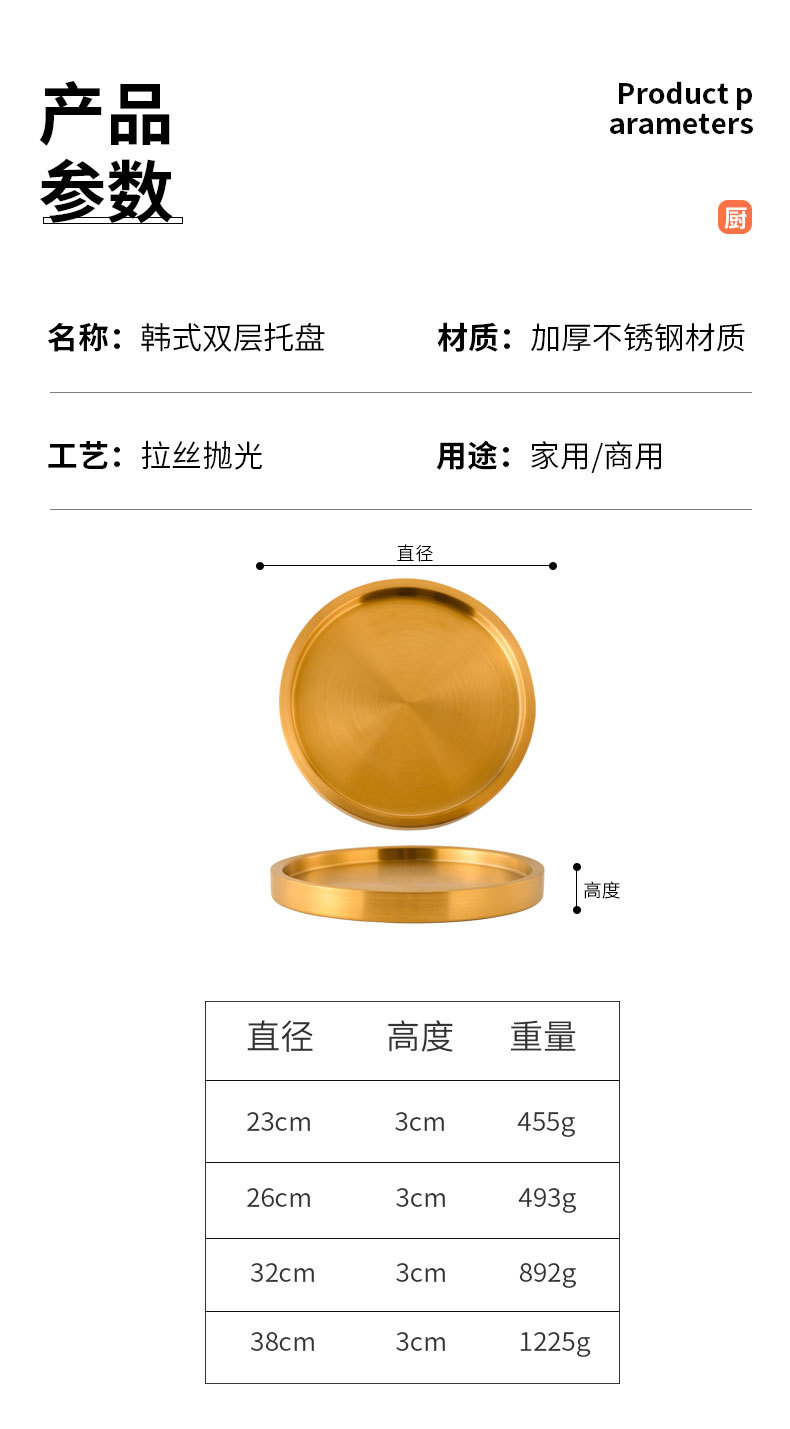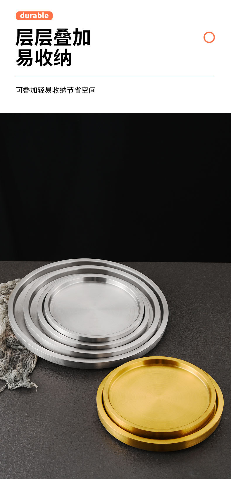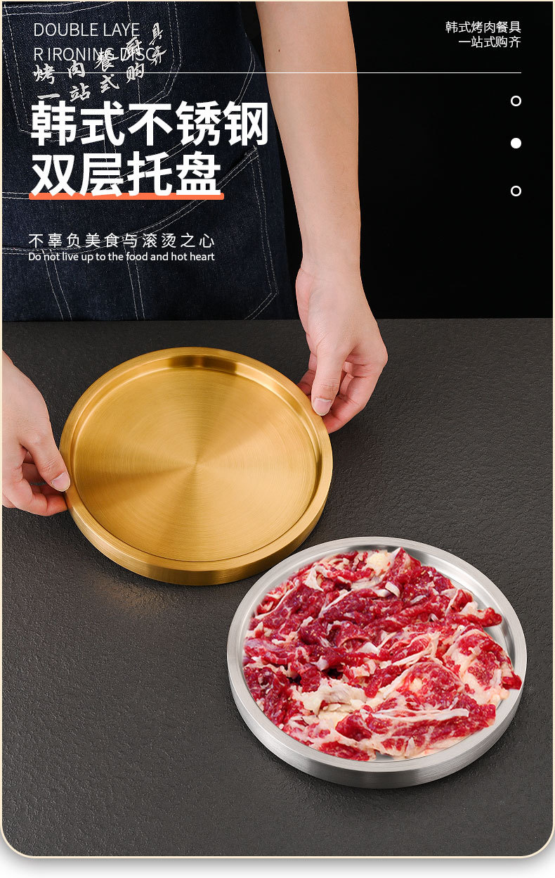 304 스테인레스 스틸 디스크 상업용 더블 레이어 플레이트 비 지능형 냄비 레스토랑 쇠고기 트레이 두꺼운 플랫 플레이트 바베큐 샵 플레이트스토어 가기