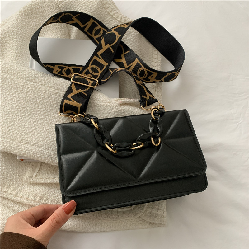 가을과 겨울 작은 가방 2021 새로운 넓은 어깨 끈 패션 크로스 바디 여성 가방 마름모꼴 자수 체인 캐주얼 작은 사각형 가방스토어 가기
