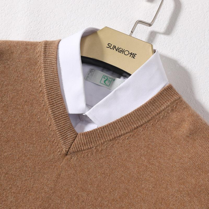 캐시미어 스웨터 남성용 가을과 겨울 풀오버 스웨터 남성용 비즈니스 캐주얼베이스 라운드 V-넥 스웨터 니트 울 스웨터