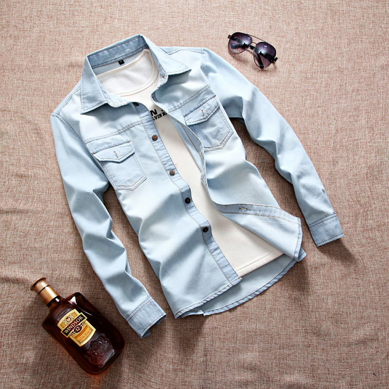 2025 대외 무역 얇은 긴팔 데님 셔츠 젊은 남성 클래식 심플 베이스 올 시즌 캐주얼 셔츠 다용도 재킷스토어 가기