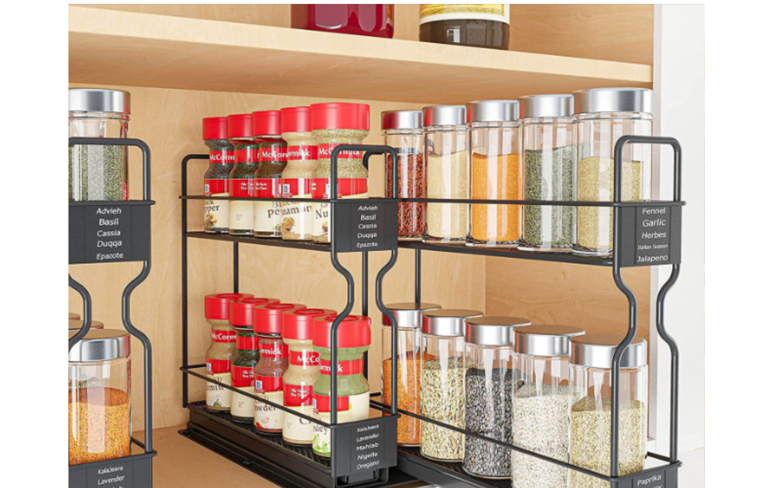 아마존 더블 레이어 풀 아웃 연철 조미료 랙 캐비닛 항아리 슬라이드 아웃 조미료 주방 보관함 보관함스토어 가기