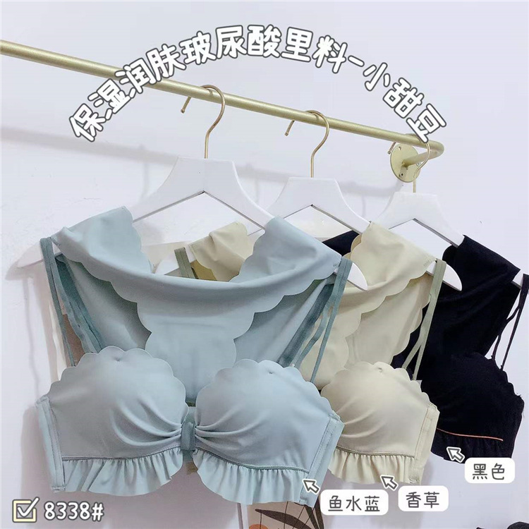 봄 8338 새로운 일본 단순 직보 중간 두꺼운 작은 가슴 푸쉬 업 피부 친화적 인 통기성 비 새우 브래지어 세트