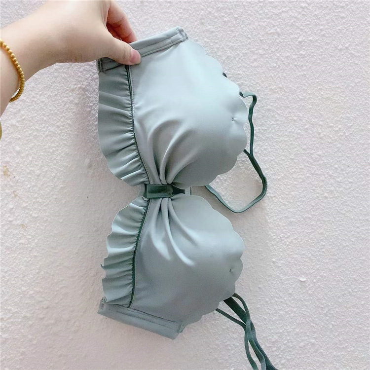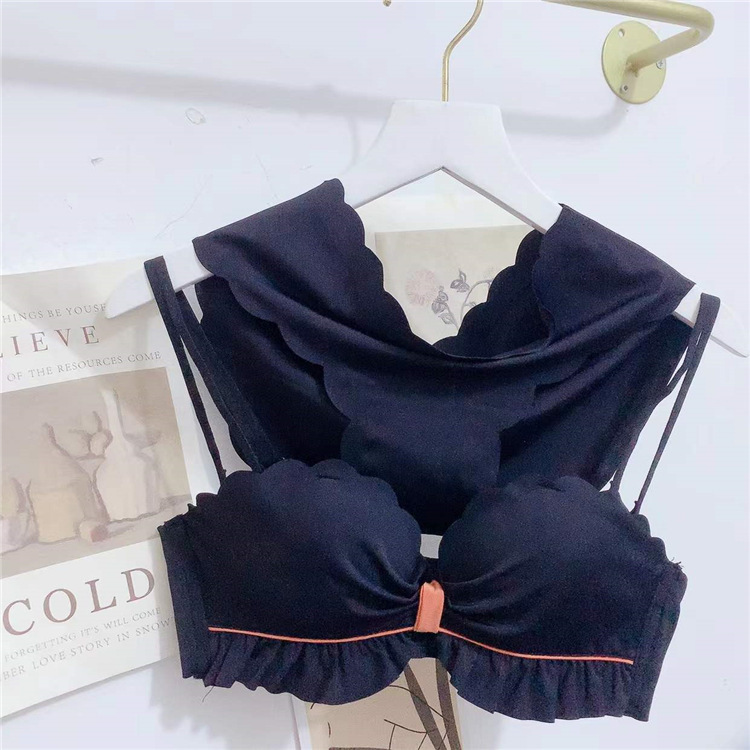 春季新品小甜豆日系简约光面中厚小胸聚拢亲肤透气无钢圈文胸套装